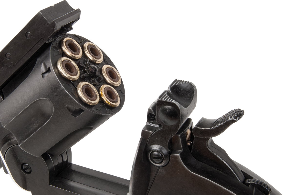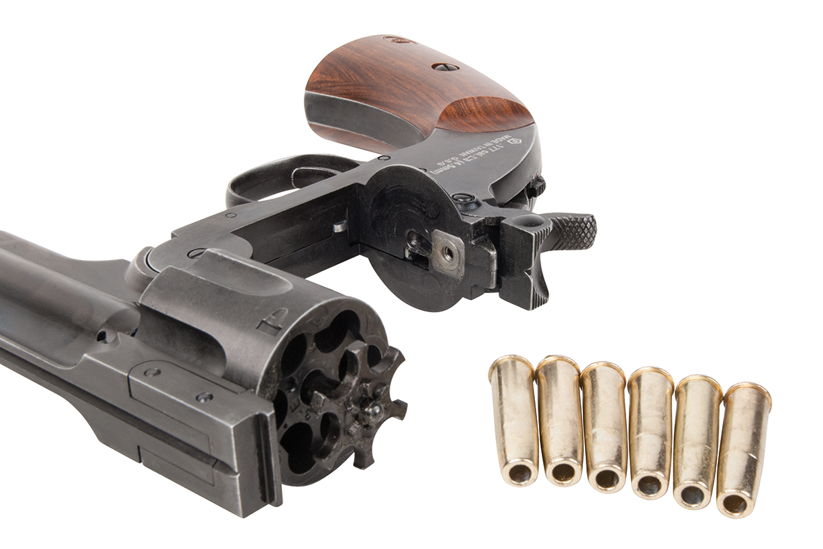 Für den Gebrauch des 6-Zoll-Schofield-Revolvers sind lediglich passende Luftpistolen-Munition im Kaliber 4,5mm und 12g CO2-Patronen erforderlich, die ebenfalls im Action-Shop24 erhältlich sind. Im Lieferumfang sind Hülsen für 4,5mm Diabolos enthalten.