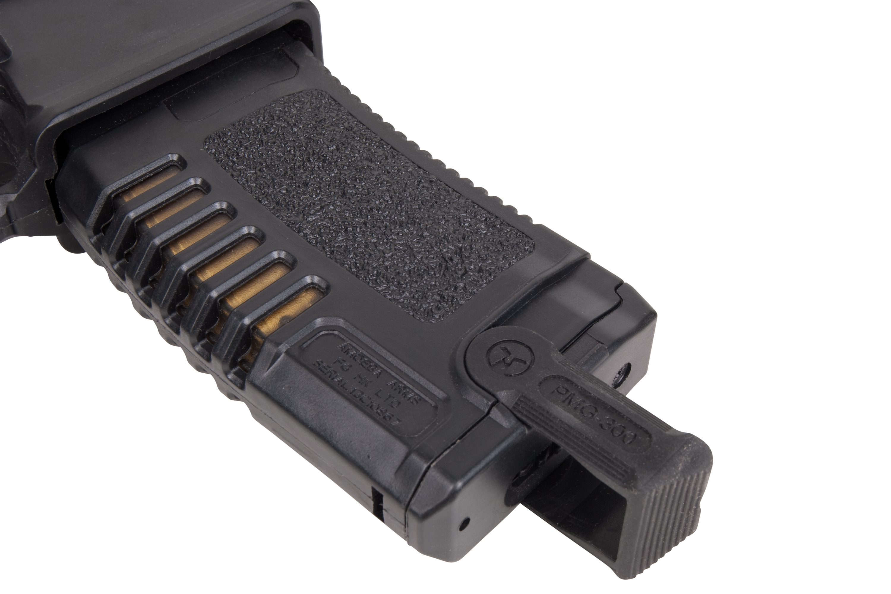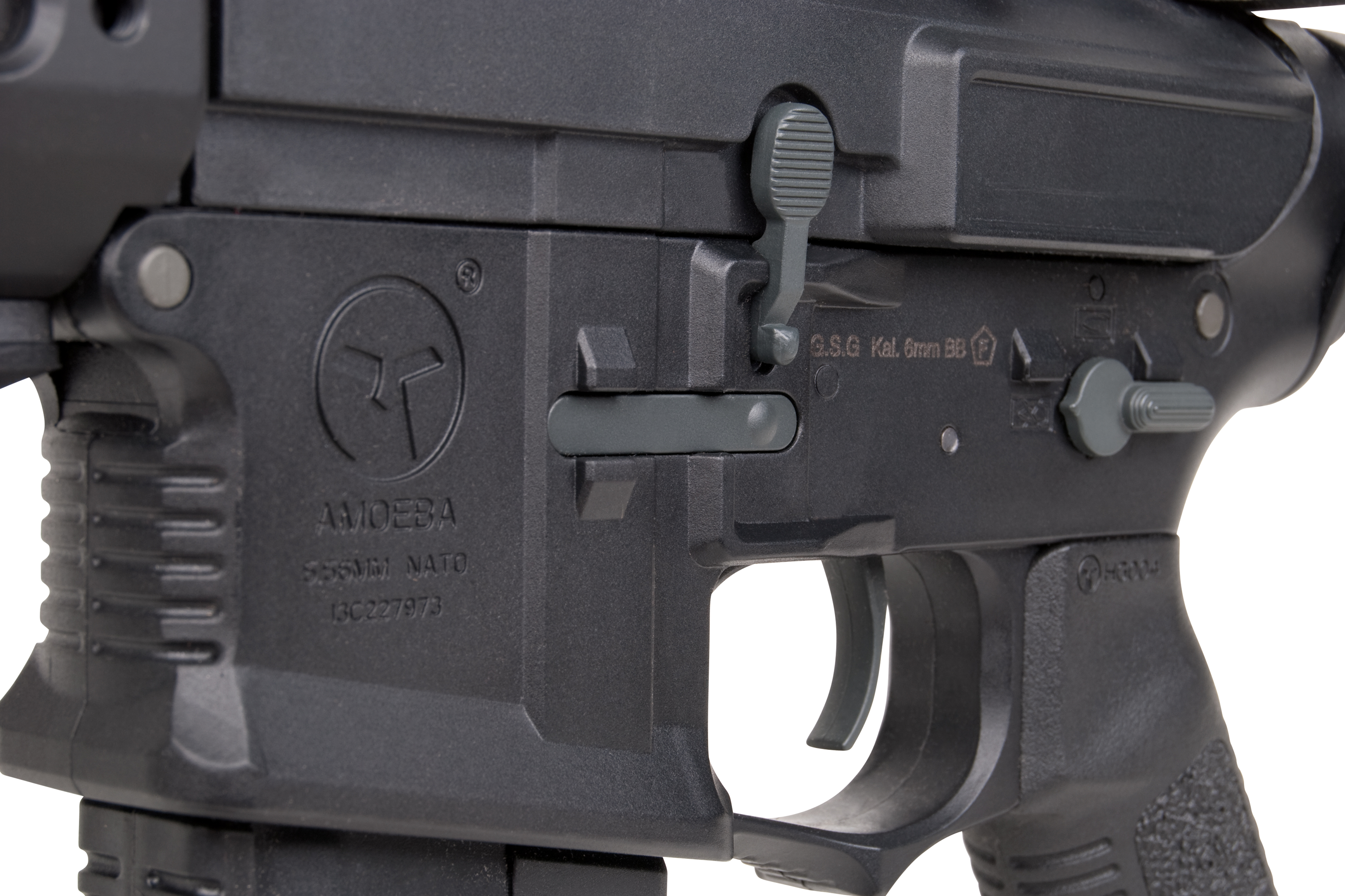 Die Eigenentwicklung AMOEBA M4 013 basiert auf dem bekannten M4, verfügt aber über ein komplett neues Frontgriff-Design, welches moderne Schieß-Techniken ermöglicht. Durch das leichte, modulare Schienensystem kann eine breite Palette an optionalem Zubehör befestigt werden.