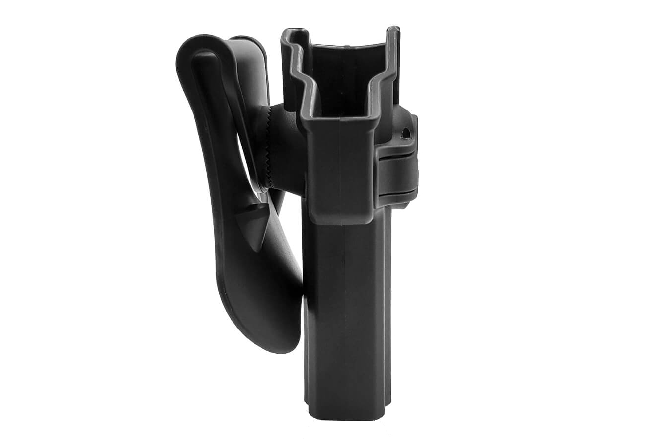 Amomax Holster sind hochwertige Passform-Holster aus Polymer. Der Vorteil gegenüber Pistolenholster aus Ledern ist neben dem leichteren Gewicht, auch die erhöhte Verschleißfestigkeit. Die Pistolen-Holster eignen sich für eine Vielzahl von Einsatzgebieten, wie das Jagen, Sportschießen, Softair, Militär oder Luftdruck schießen. Das Gürtel Pistolenholster ist mit 5 unterschiedlichen Plattformen kompatibel: Paddle (enthalten), Gürtel Clip, Gürtel Schlaufe, Molle und Bein Plattform. Alle Trageplattformen können mit nur einer Schraube ausgetauscht werden. Der passende Innensechskantschlüssel ist im Lieferumfang enthalten.