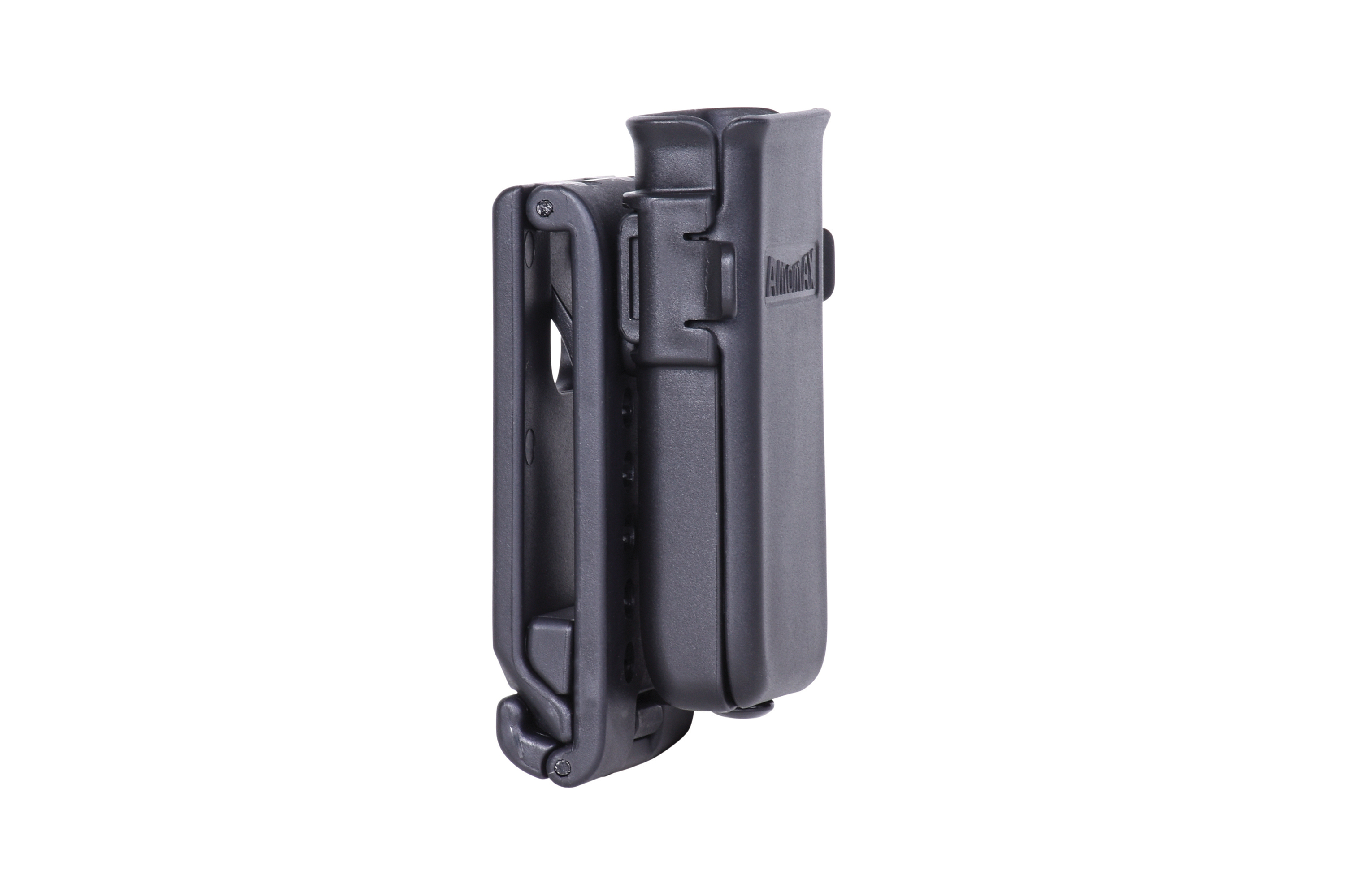 Durch eine Innensechskantschraube an Unterseite undzwei Rastenverstellern außen wird das Holster optimal andas Magazin angepasst. Die Höhe ist 7-fach verstellbar, so das essowohl für kurze als auch lange Magazine geeignet ist.Klemmvorrichtung, damit das Magazin nicht rausfallen kann.