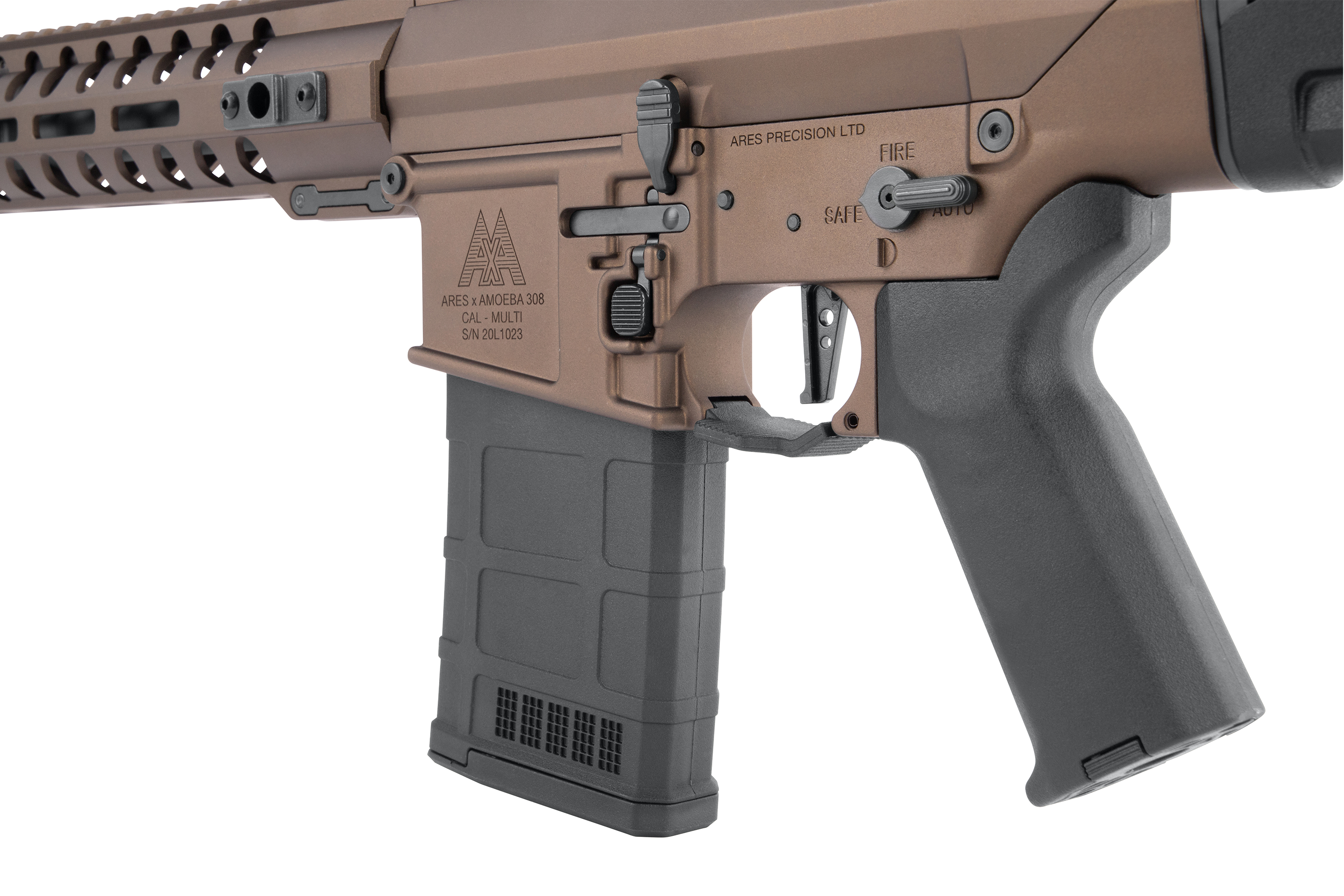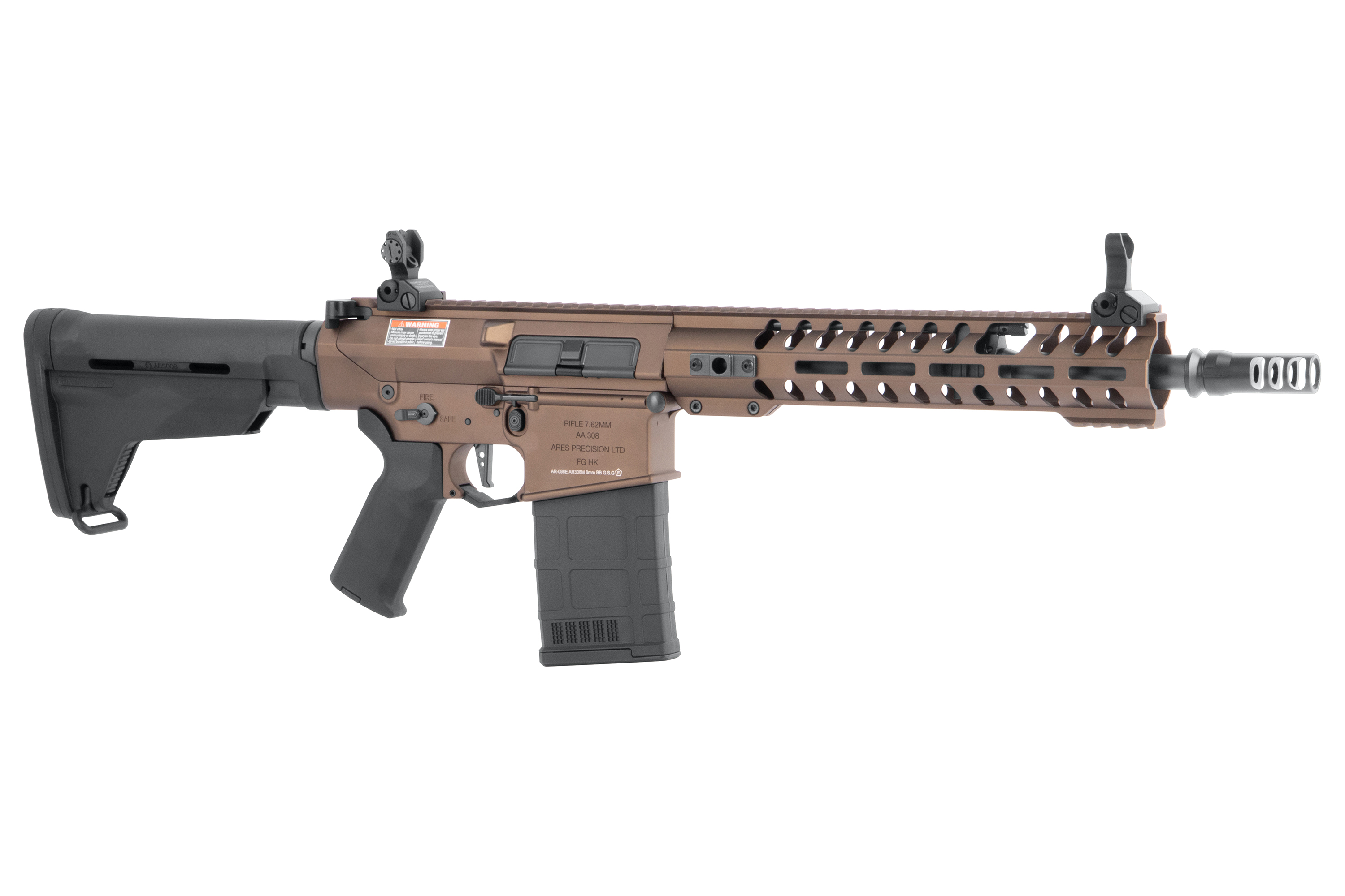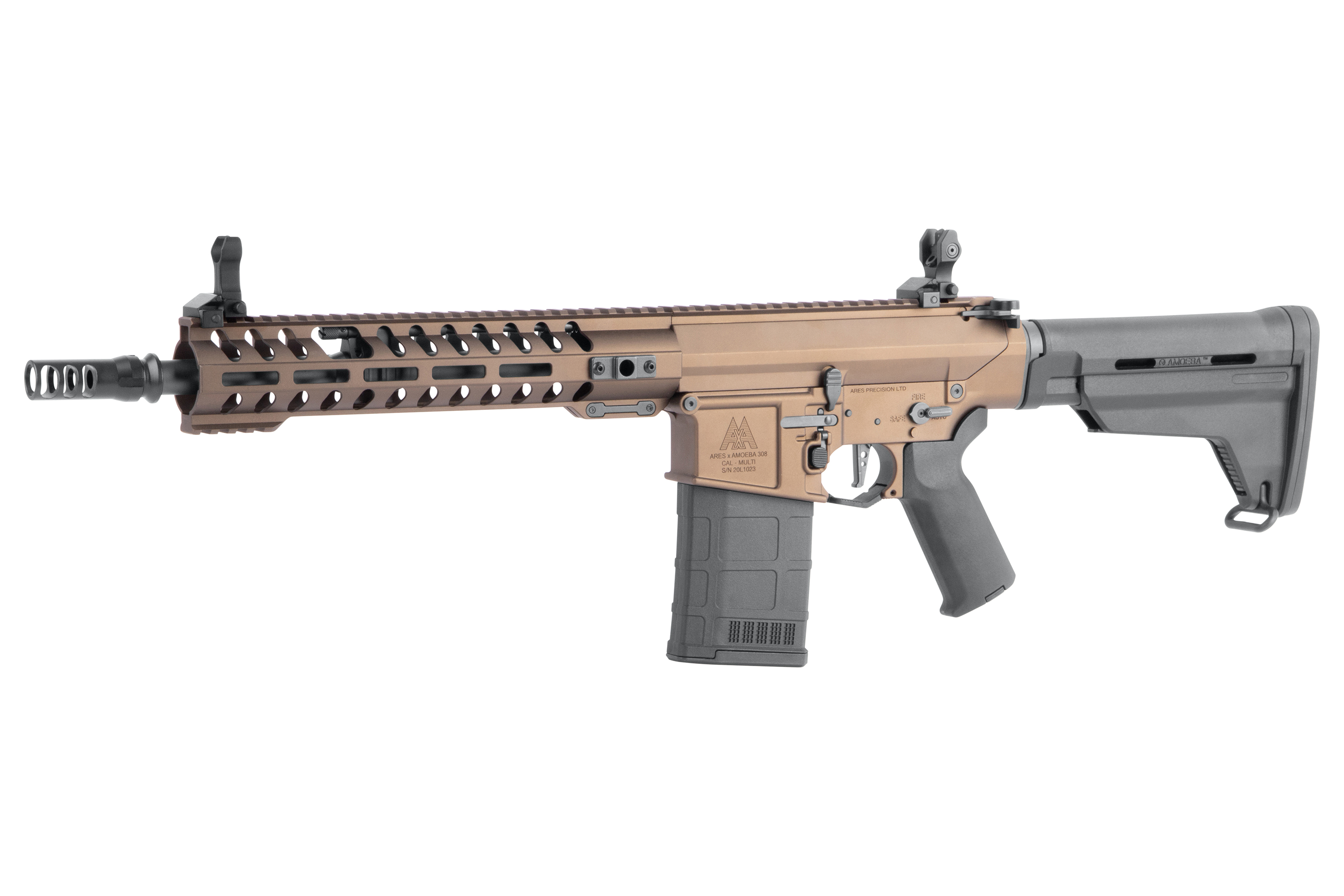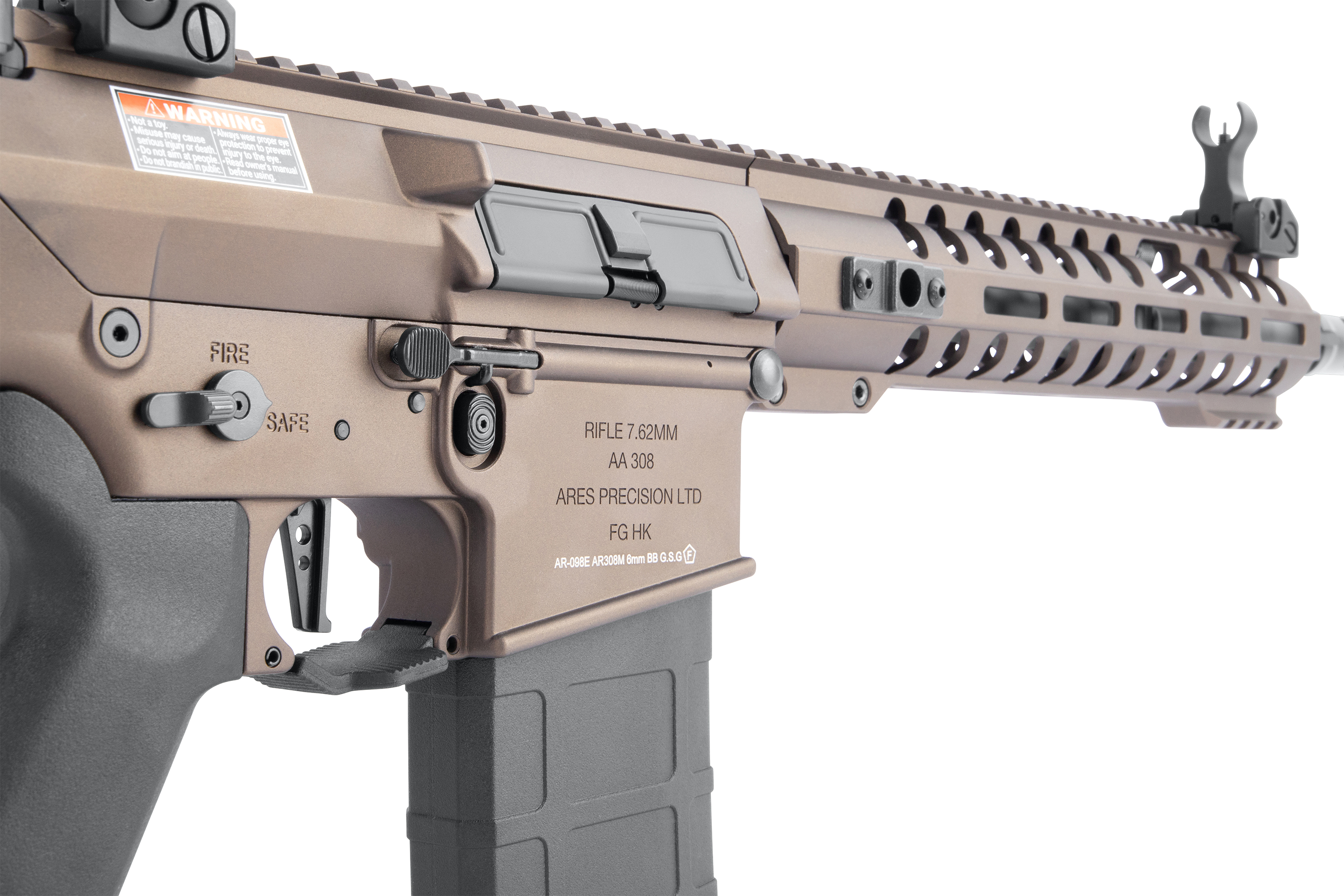 Die neue Rifle-Serie AR.308 S-AEG aus dem Hause ARES verfügt über ein neuartiges 7,62-mm Design und kommt in einem einzigartigen Bronze-Farbton. Als Munition werden BBs im Kaliber 6mm genutzt.