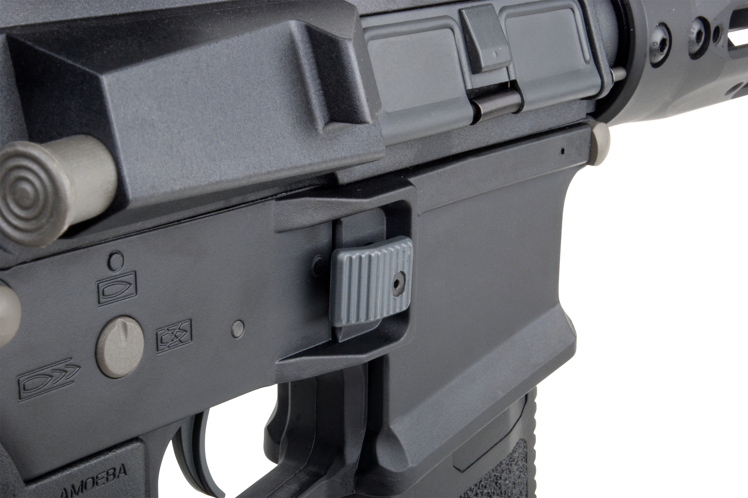 AMOEBA AIRSOFT ist eine brandneue Softair-Marke von ARES, die darauf abzielt, neue, innovative und marktgerechte Produkte zu entwerfen. Die Eigenentwicklung AMOEBA M4 Tactical Serie erinnert grob an die bekannte M4 Tactical Serie. Das Modell gibt es in drei Varianten: Die 008 ist dabei die Standard- und die 009 die Long-Version.