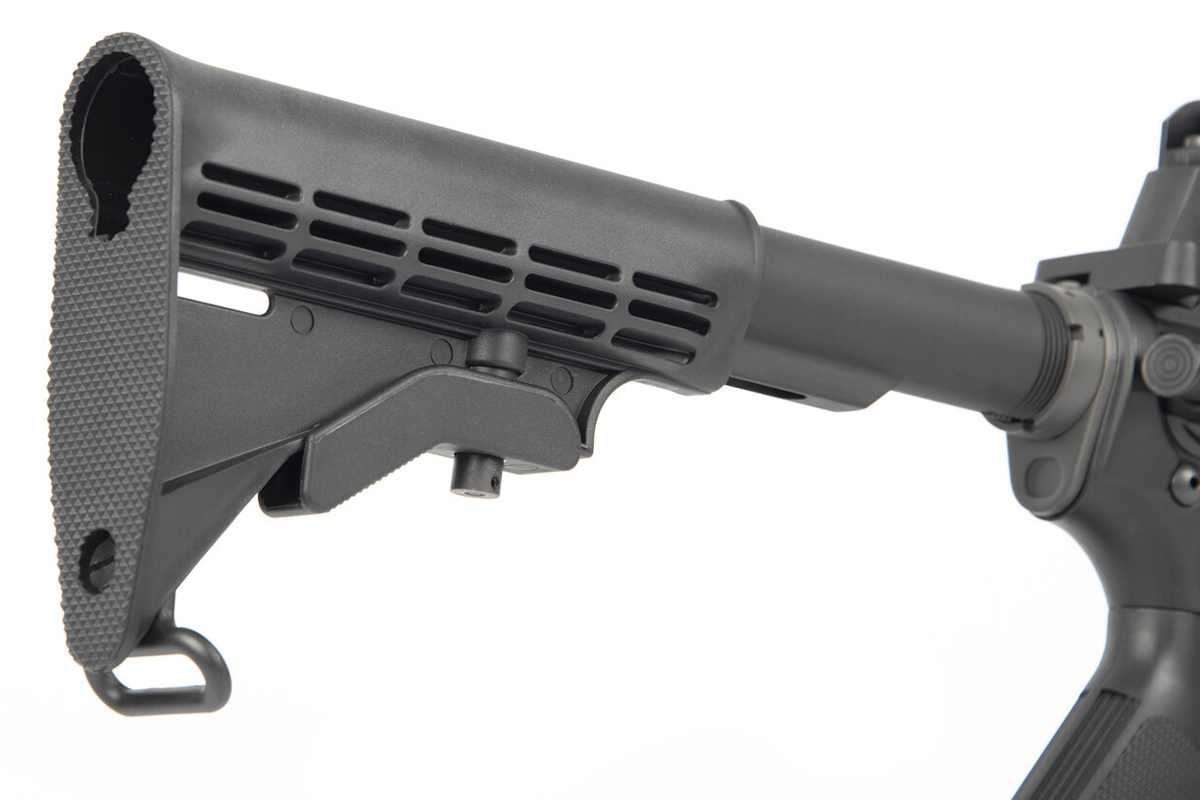 Das Gewehr verfügt über einen Upper und Lower Receiver aus Metall, einen CNC-gefrästen Aluminium-Handschutz und einen einteiligen Aluminium-Außenlauf. Dadurch erreichst du eine optimale Stabilität bei gleichzeitig realistischer Gewichtsverteilung. Der ergonomische Schiebeschaft mit integriertem Batteriefach bietet dir flexible Anpassung und hohen Komfort bei längerem Spiel. Dank der funktionellen Bolzenverriegelung und der manuellen Sicherung erhältst du ein authentisches, praxisnahes Schusserlebnis, genau das, was du von einer professionellen Softairwaffe erwartest.