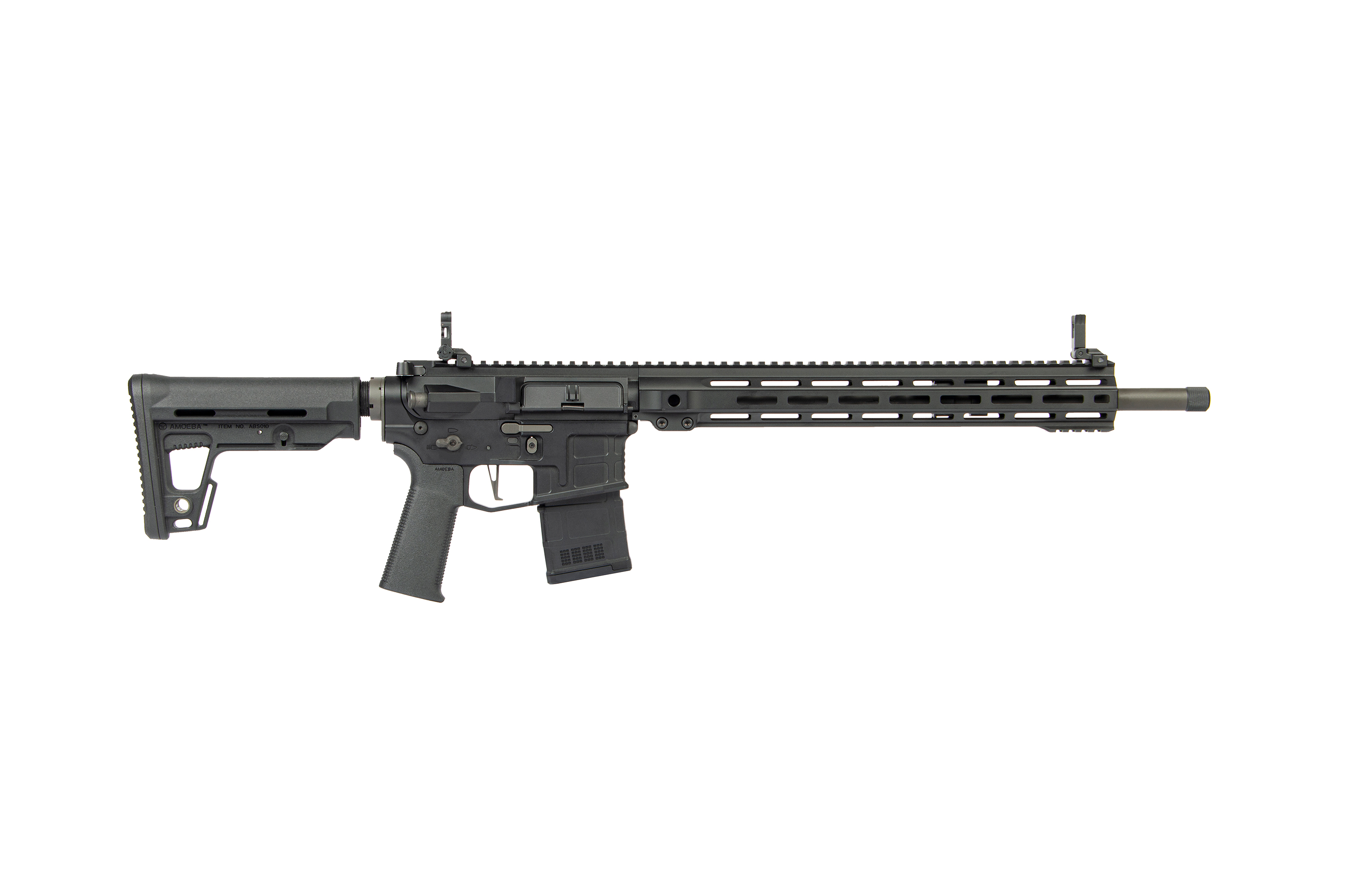 Auch in der Ergonomie überzeugt dieses Airsoft Gewehr: Der Ares Slim Grip liegt angenehm in der Hand, während der in fünf Positionen verstellbare Hinterschaft optimalen Komfort bietet. Voll funktionsfähig sind zudem der Bolt Catch sowie der Spannhebel zum Öffnen des Patronenfensters. Der beidseitige Magazin Release erhöht die Bedienbarkeit für Rechts- wie Linkshänder gleichermaßen. In Kombination mit dem stufenlos verstellbaren Hop-Up und den stabilen Flip-Up Visierungen aus Metall genießt du ein präzises und ruhiges Schussverhalten, das im Spiel entscheidend ist.
