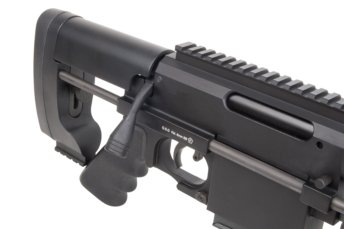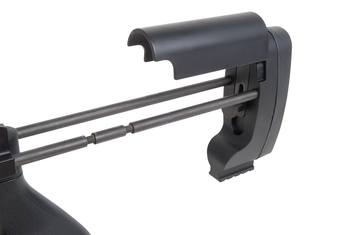 - Einstellbare Schulterstütze mit Picatinny Schiene