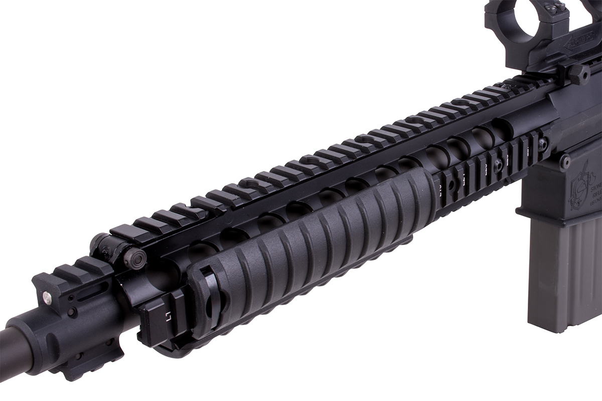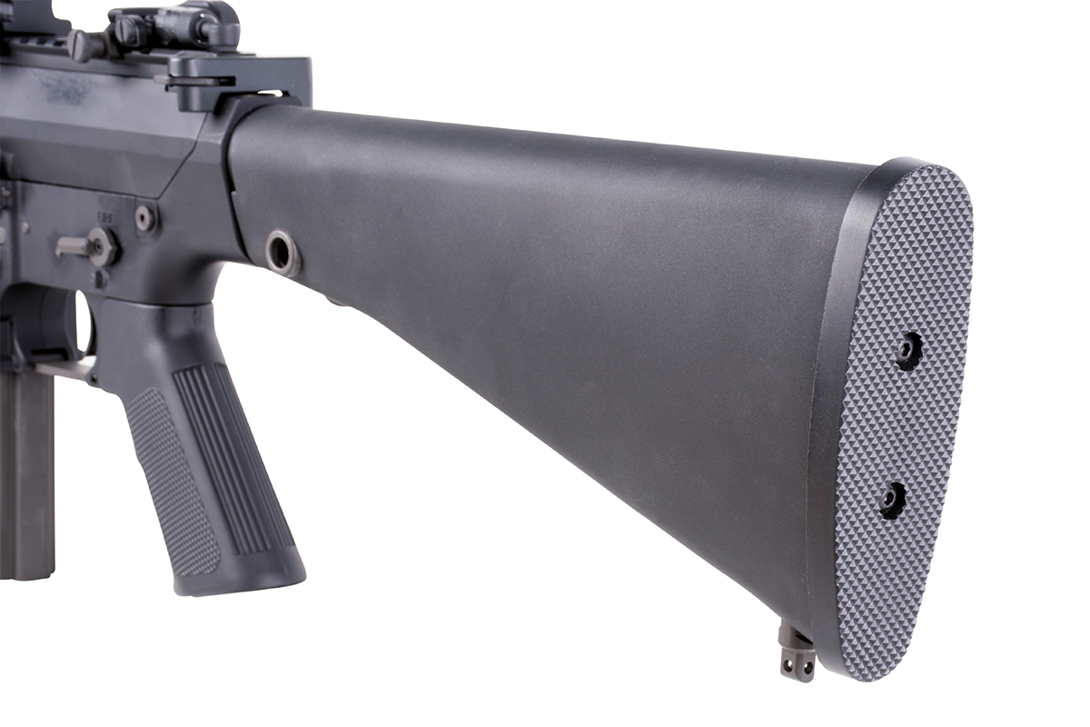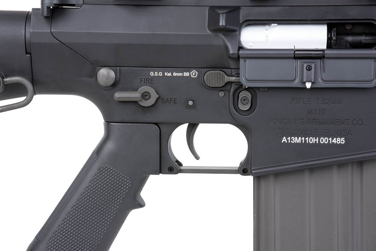 Der hochwertige Nachbau aus dem Hause ARES wurde mit verschiedenen Knight's Armament Original-Markings und einer eingearbeiteten Seriennummer versehen. Das Gewehr ist für Rechts- und Linkshänder geeignet und verfügt über ein funktionierendes Bolt-Catch System. Der feste Schaft besteht aus Nylon Fiber, die Gearbox und die Gears aus Vollmetall. Body und Außenlauf wurden aus einer CNC bearbeiteten 6063 Aluminiumlegierung gefertigt.