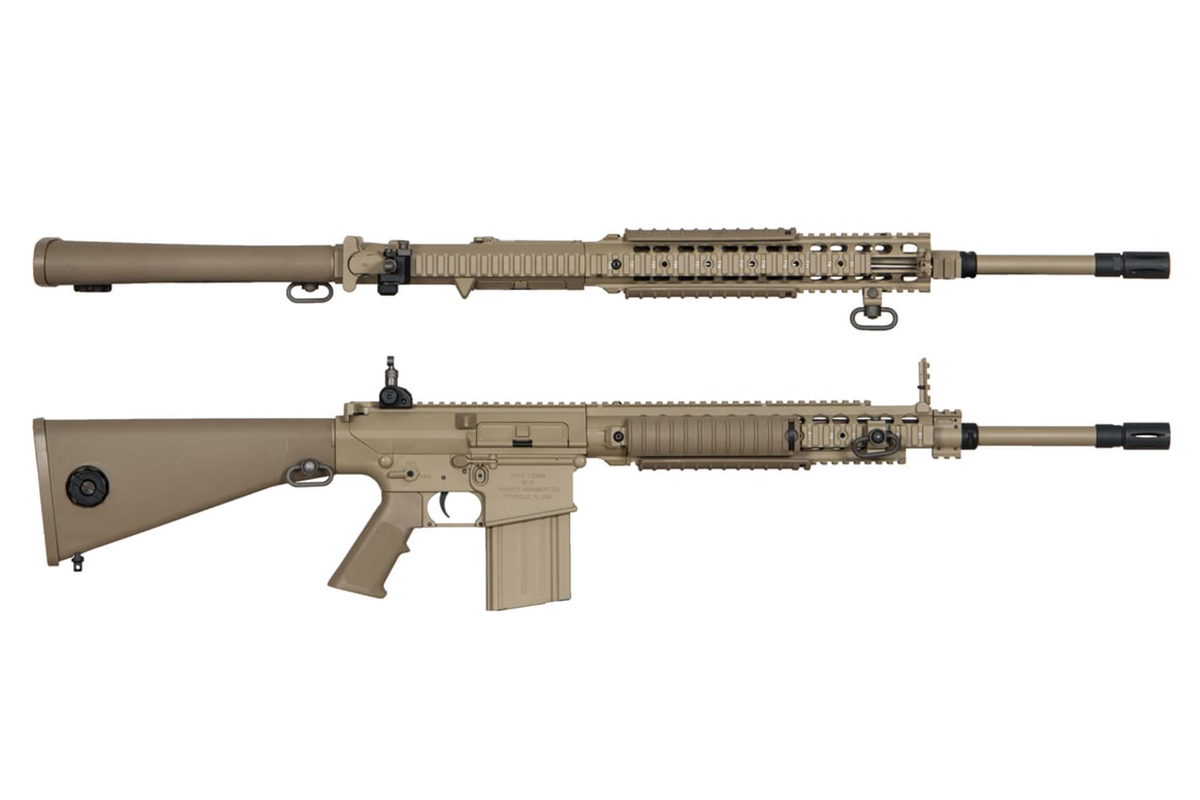 Der hochwertige Nachbau aus dem Hause ARES wurde mit verschiedenen Knight's Armament Original-Markings und einer eingearbeiteten Seriennummer versehen. Das Gewehr ist für Rechts- und Linkshänder geeignet und verfügt über ein funktionierendes Bolt-Catch System. Der feste Schaft besteht aus Nylon Fiber, die Gearbox und die Gears aus Vollmetall. Body und Außenlauf wurden aus einer CNC bearbeiteten 6063 Aluminiumlegierung gefertigt.