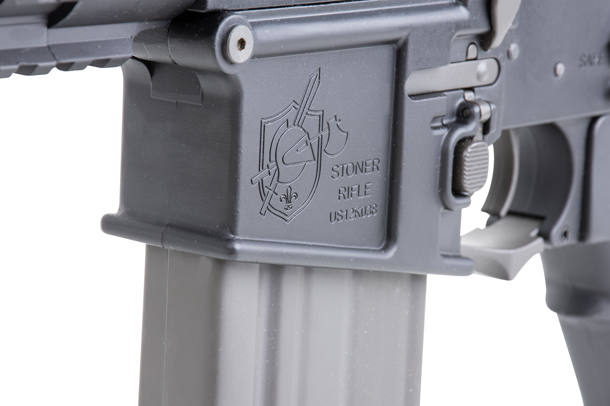 Der hochwertige Nachbau aus dem Hause ARES wurde mit verschiedenen Knight's Armament Original-Markings und einer eingearbeiteten Seriennummer versehen. Das Gewehr ist für Rechts- und Linkshänder geeignet und verfügt über ein funktionierendes Bolt-Catch System. Der feste Schaft besteht aus Nylon Fiber, die Gearbox und die Gears aus Vollmetall. Body und Außenlauf wurden aus einer CNC bearbeiteten 6063 Aluminiumlegierung gefertigt.