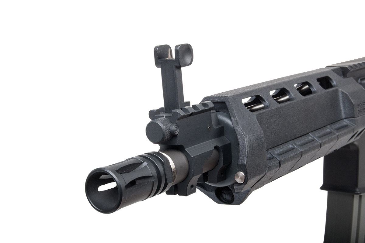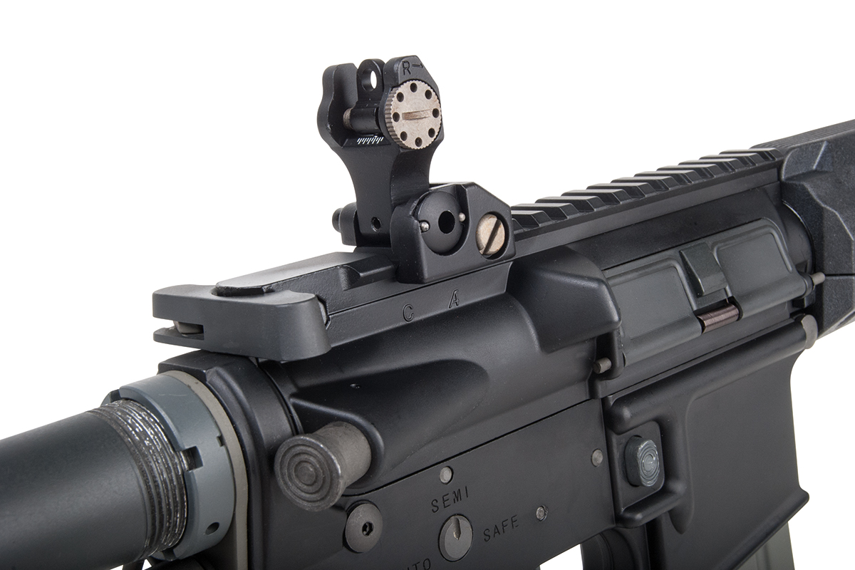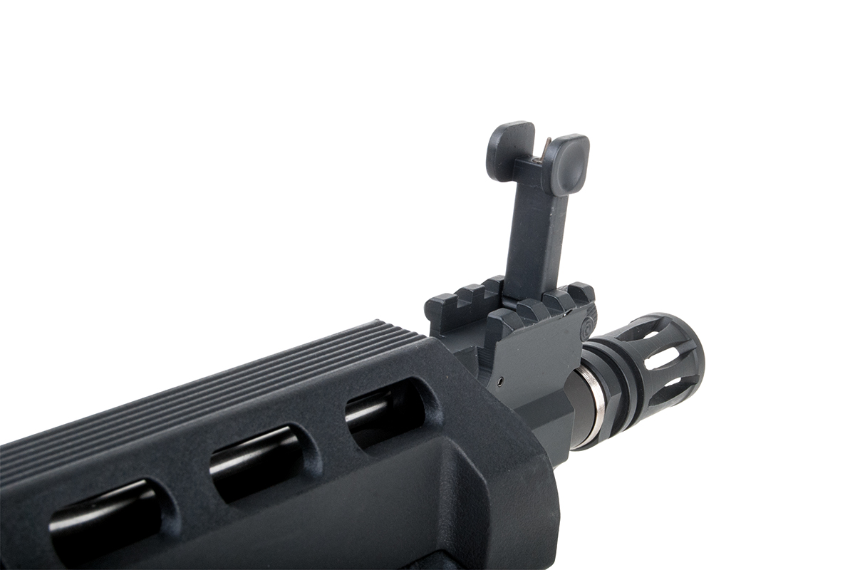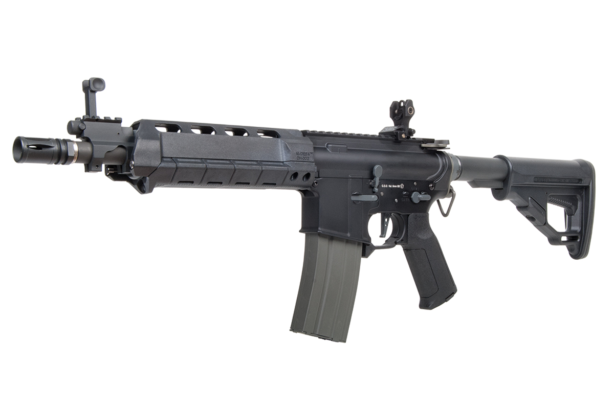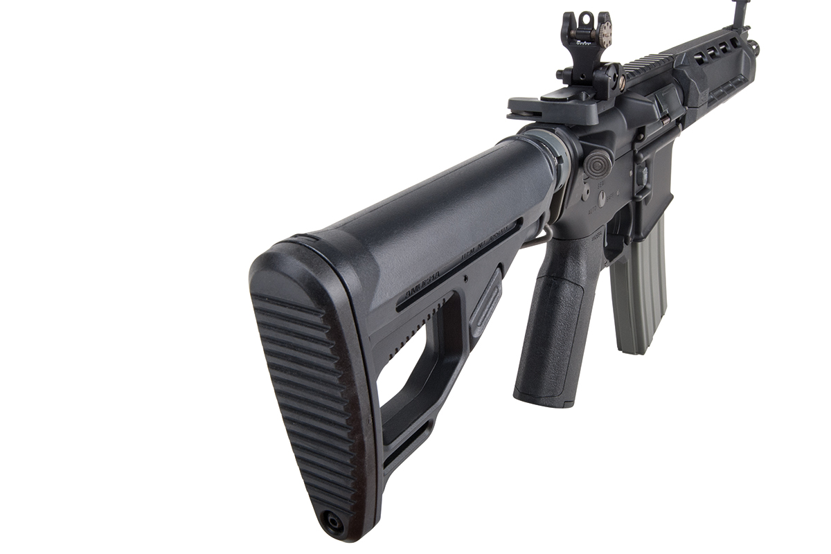 Das Ares X Amoeba AMSS ist ein Sturmgewehr auf Basis der berühmten M4-Baureihe mit integriertem Electronic Firing Control System (EFCS). Es verfügt über einen innovativen taktischen Vorderschaft, bei dem sich einzelne Elemente individuell austauschen lassen. Die einstellbare Schulterstütze lässt sich an fünf Positionen arretieren. Das einstellbare Spin-Up System sorgt für die nötige Präzision.