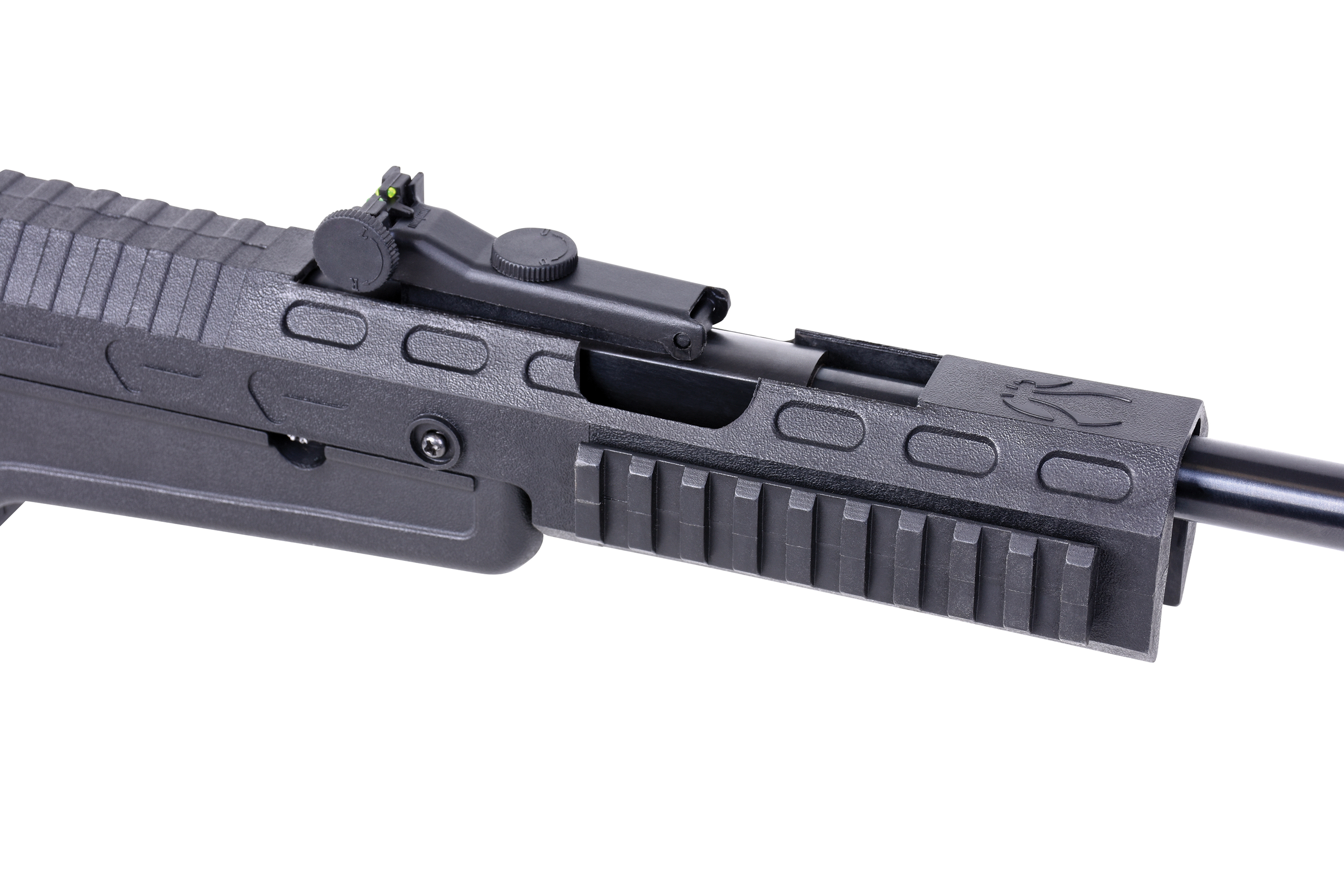 Ein echtes Highlight dieses Knicklauf Luftgewehrs sind die fünf integrierten Picatinny-Schienen. Neben einer 21-mm-Schiene zur Montage von Optiken aus der Kategorie Zielfernrohre & Red Dots verfügt das Gewehr über weitere Rails, unter anderem unter dem Lauf – ideal für die Montage eines Zweibeins oder weiteren Luftgewehr Zubehörs.