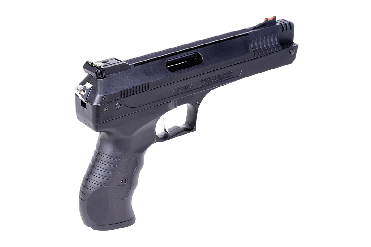 Der Metallabzug ist leichtgängig und einstellbar. Auf der Pistole befindet sich eine verstellbare Fiber Optik Visierung in rot/grün. Eine weitere besondere Eigenschaft ist die automatische Sicherung. Diese klinkt sich beim Öffnen des Laufes selbstständig ein und lässt sich einfach wieder lösen, indem man den Sicherungsknopf direkt über dem Abzugsbügel betätigt. Außerdem verfügt die BEEMAN P17 über eine gefräste 11mm Schiene zur Anbringung von Zubehör.
