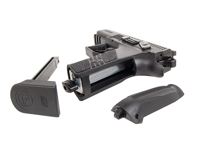 Der Antrieb der CZ 75 P-07 Duty erfolgt über eine 12g Co2 Kapsel, die einfach und schnell direkt in die Softair Pistole eingelegt wird. Dazu wird der Griffrücken abgenommen, was eine schnelle und unkomplizierte Handhabung ermöglicht. Dank des einstellbaren Hop-Up-Systems kann die Schusspräzision individuell angepasst werden, sodass auch auf größere Distanzen eine hohe Treffgenauigkeit mit der Softairpistole gewährleistet ist.