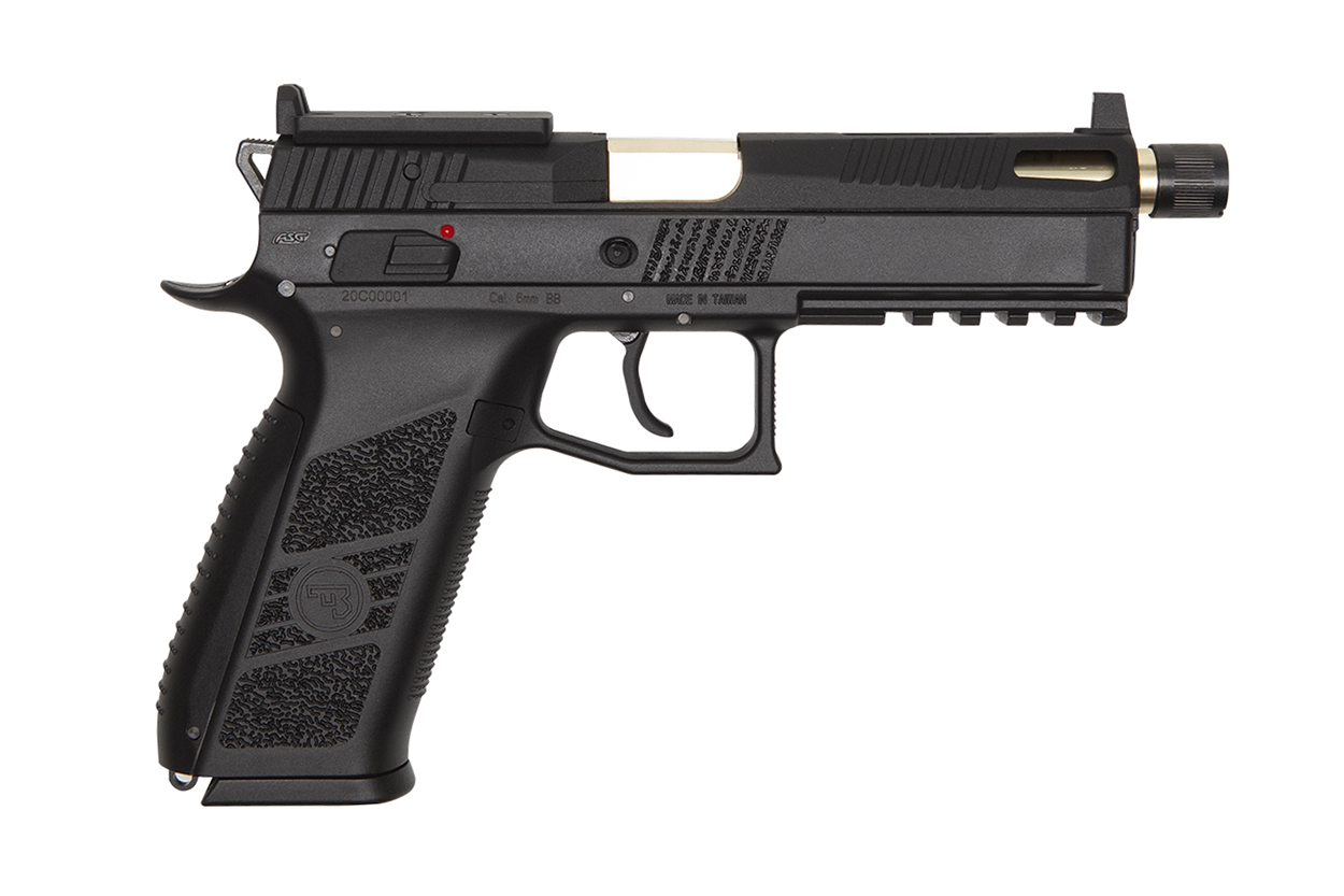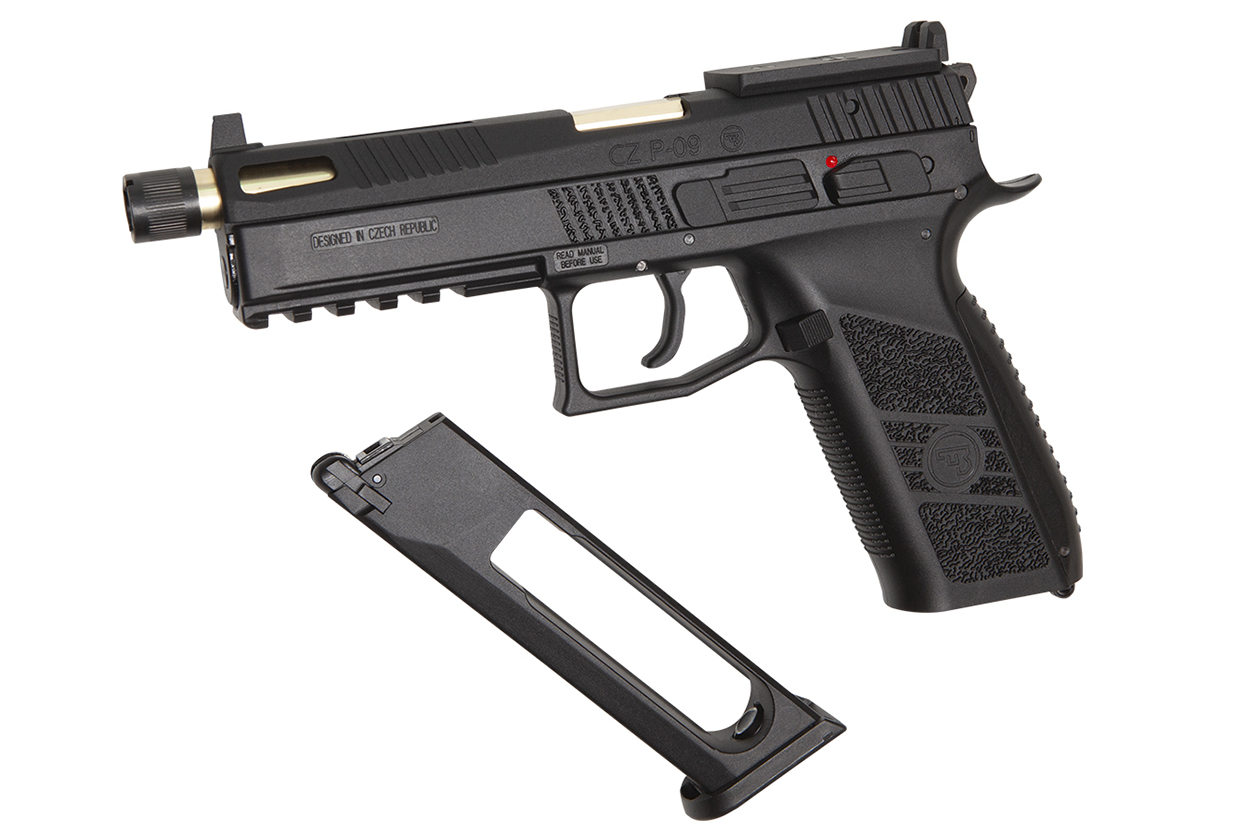 Die CZ75 P-09 von ASG ist eine hochwertige Airsoft Replik dieser Waffe. Da die CZ 75 P-09 lizenzgerecht gefertigt wird, trägt die Softair auch die Original-Markierungen. Die Softair Waffe bleibt dem Original treu. Der Schlitten und auch das Gehäuse der Airsoft Pistole sind aus Metall gefertigt. Die Griffschalen hingegen sind aus Kunststoff. Dank Serrations an der Rückseite des Schlittens und dem strukturierten Pistolen-Griff ist die CZ 75 P-09 Softair Pistole auch bei nassen Bedingungen leicht zu handhaben und zu bedienen.
