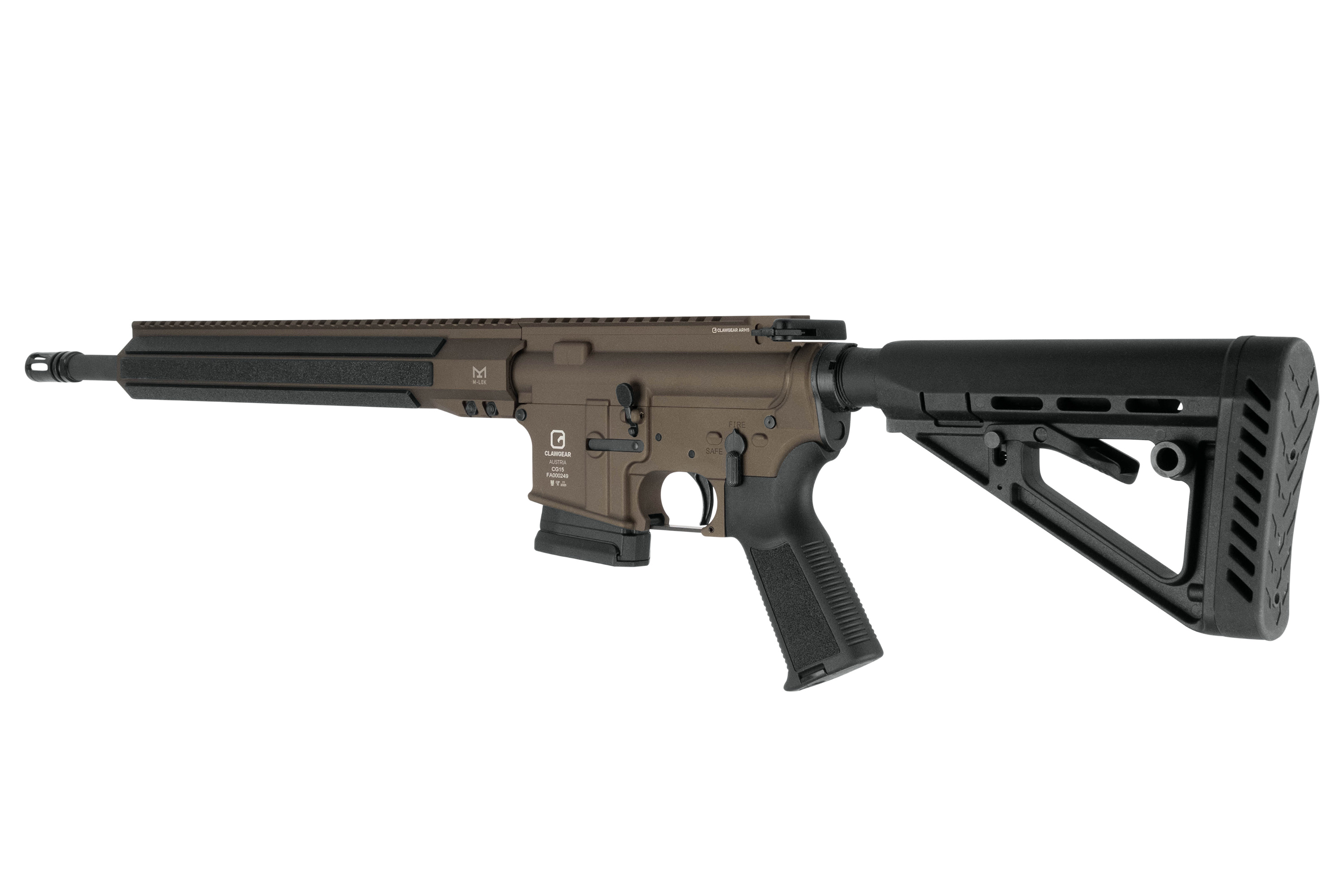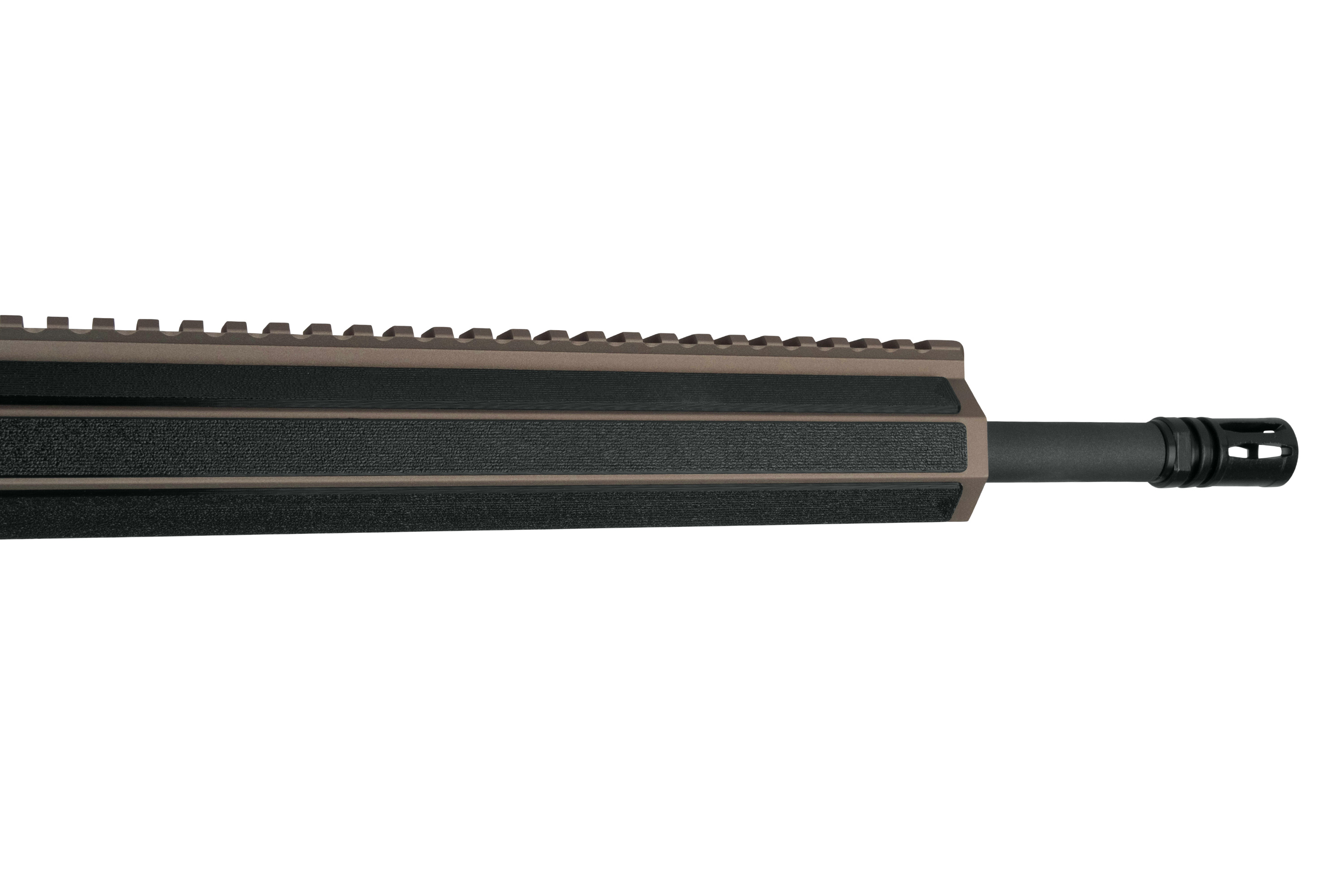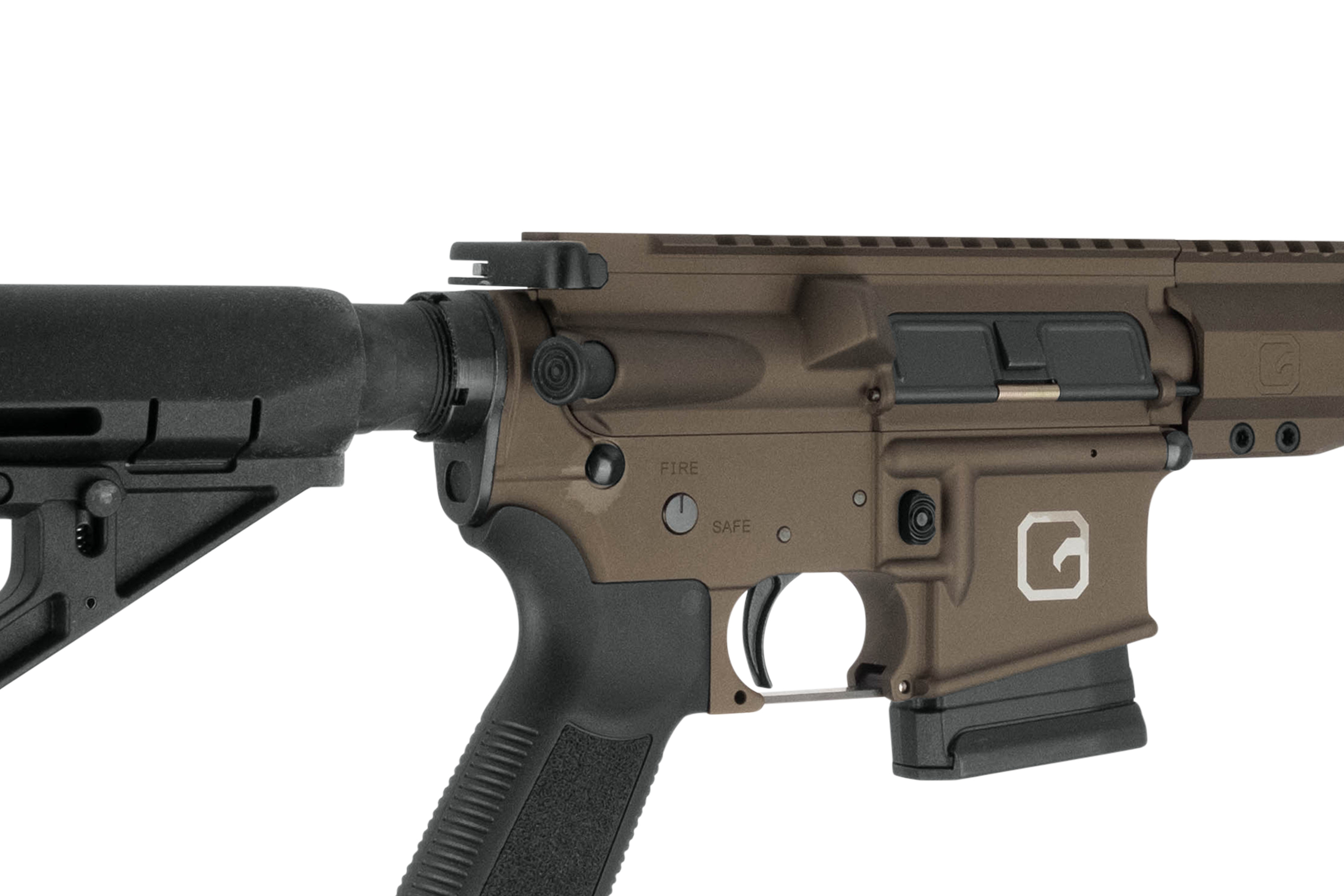 Der Upper und Lower Receiver bestehen aus gesenkgeschmiedetem 7075-T6 Aluminium, das sich in der Praxis durch extreme Festigkeit und lange Lebensdauer bewährt. Die hochwertige Harteloxierung sorgt für zusätzliche Widerstandsfähigkeit und unterstützt das moderne Bronze-Finish perfekt.