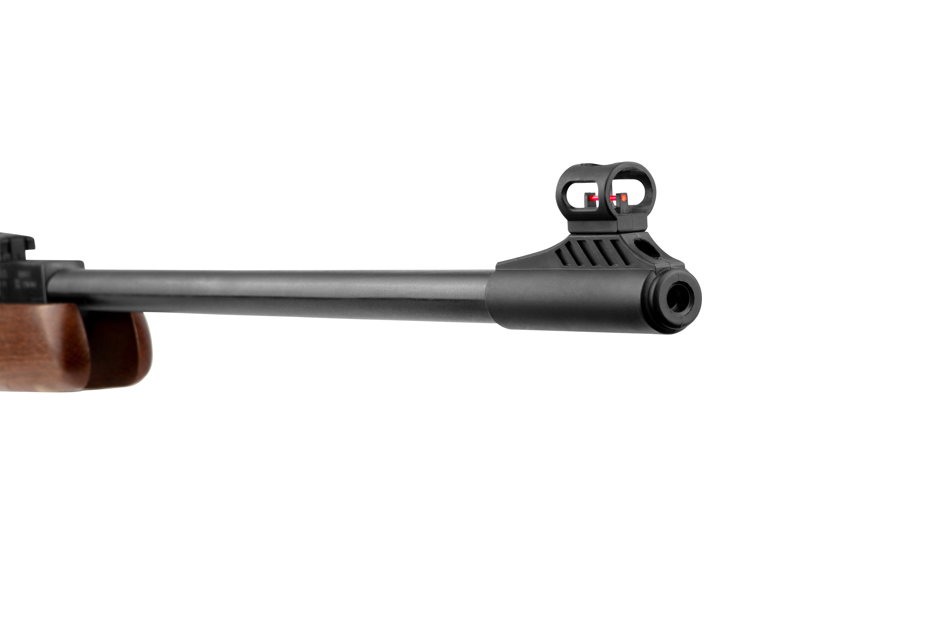 Zur Zielerfassung ist das Knicklauf Luftgewehr mit einer kontrastreichen Fiberoptik-Visierung ausgestattet, die auch bei ungünstigen Lichtverhältnissen gut ablesbar bleibt. Zusätzlich erlaubt die integrierte 11mm Prismenschiene die Montage eines Zielfernrohrs oder Red Dots, wodurch das Druckluftgewehr flexibel anpassbar bleibt.