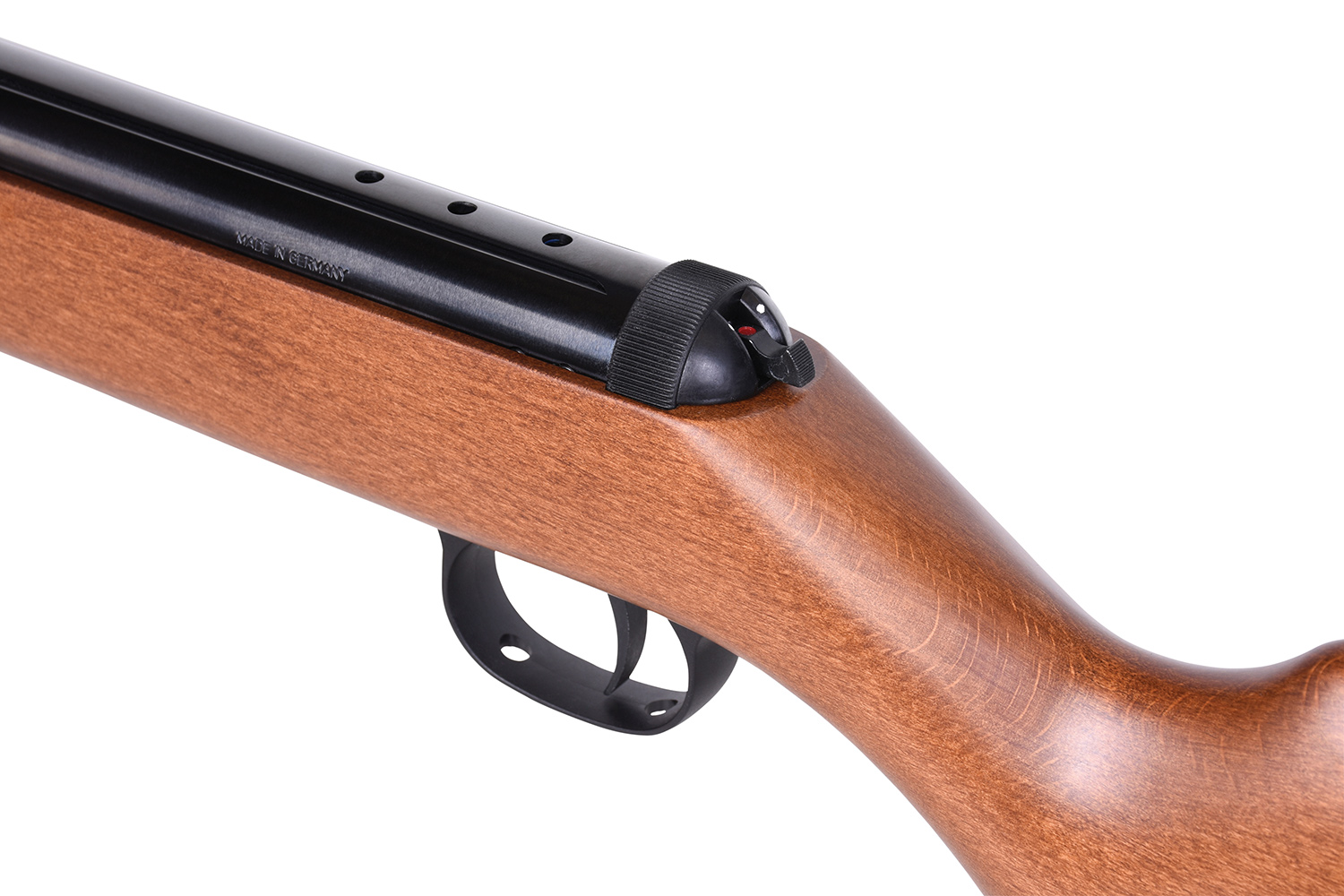 Ein weiteres Highlight des DIANA 34 Classic Druckluftgewehrs ist der T06 Präzisionsabzug, der umfassend einstellbar ist. Schützen können den Vorzugsweg, den Druckpunkt und das Abzugsgewicht individuell anpassen, um den Abzug optimal auf ihre Bedürfnisse abzustimmen. Diese Flexibilität ermöglicht eine feine Abstimmung der Schussabgabe und trägt zu einer höheren Treffsicherheit bei. Die automatische Sicherung sorgt zudem für zusätzliche Sicherheit und verhindert unbeabsichtigte Schüsse.