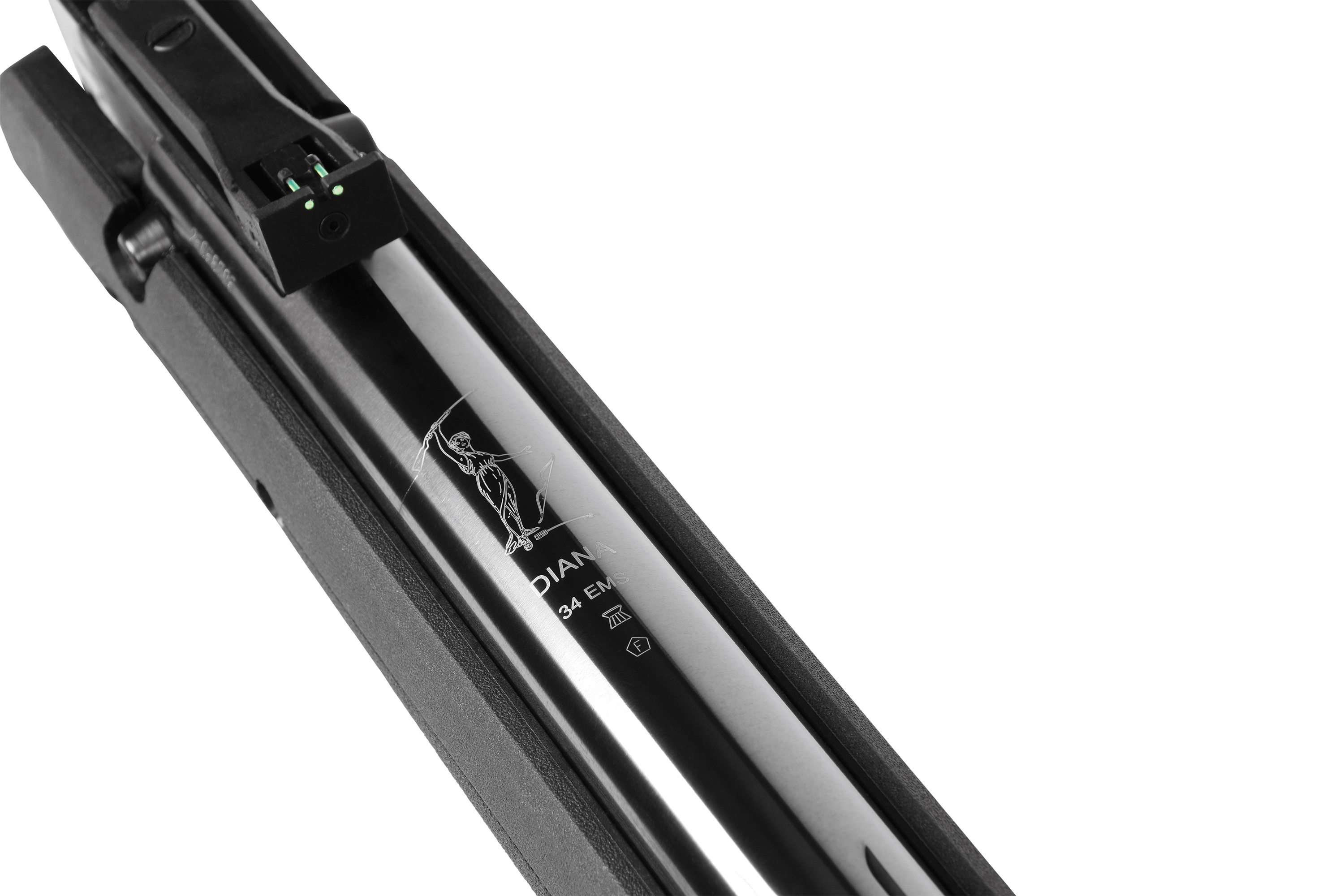 Das DIANA 34 Black Luftdruckgewehr ist außerdem schalldämpfer-kompatibel und verfügt über ein 1/2" UNF Gewinde, wodurch ein Schalldämpfer einfach montiert werden kann. Dies ist besonders nützlich für Schützen, die in lärmsensiblen Umgebungen trainieren möchten oder einfach den Geräuschpegel reduzieren wollen.