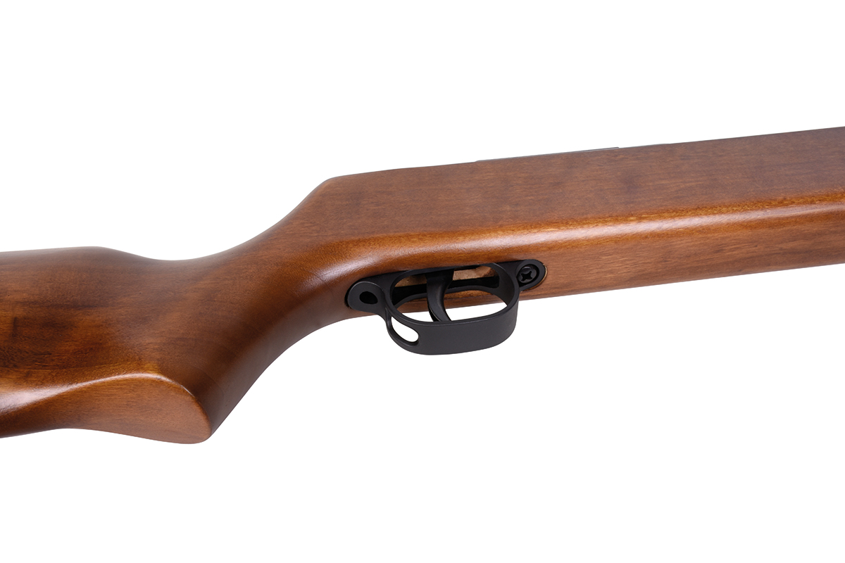 Das DIANA Luftgewehr besticht durch einen geraden Buchenholzschaft, der sowohl ästhetisch als auch funktional überzeugt. Der Schaft ist für Links- und Rechtshänder gleichermaßen geeignet und sorgt durch seine Form für einen angenehmen Halt. Die gummierte Schaftkappe dämpft den Rückstoß und trägt zur bequemen Handhabung bei, selbst bei längeren Schießsessions.