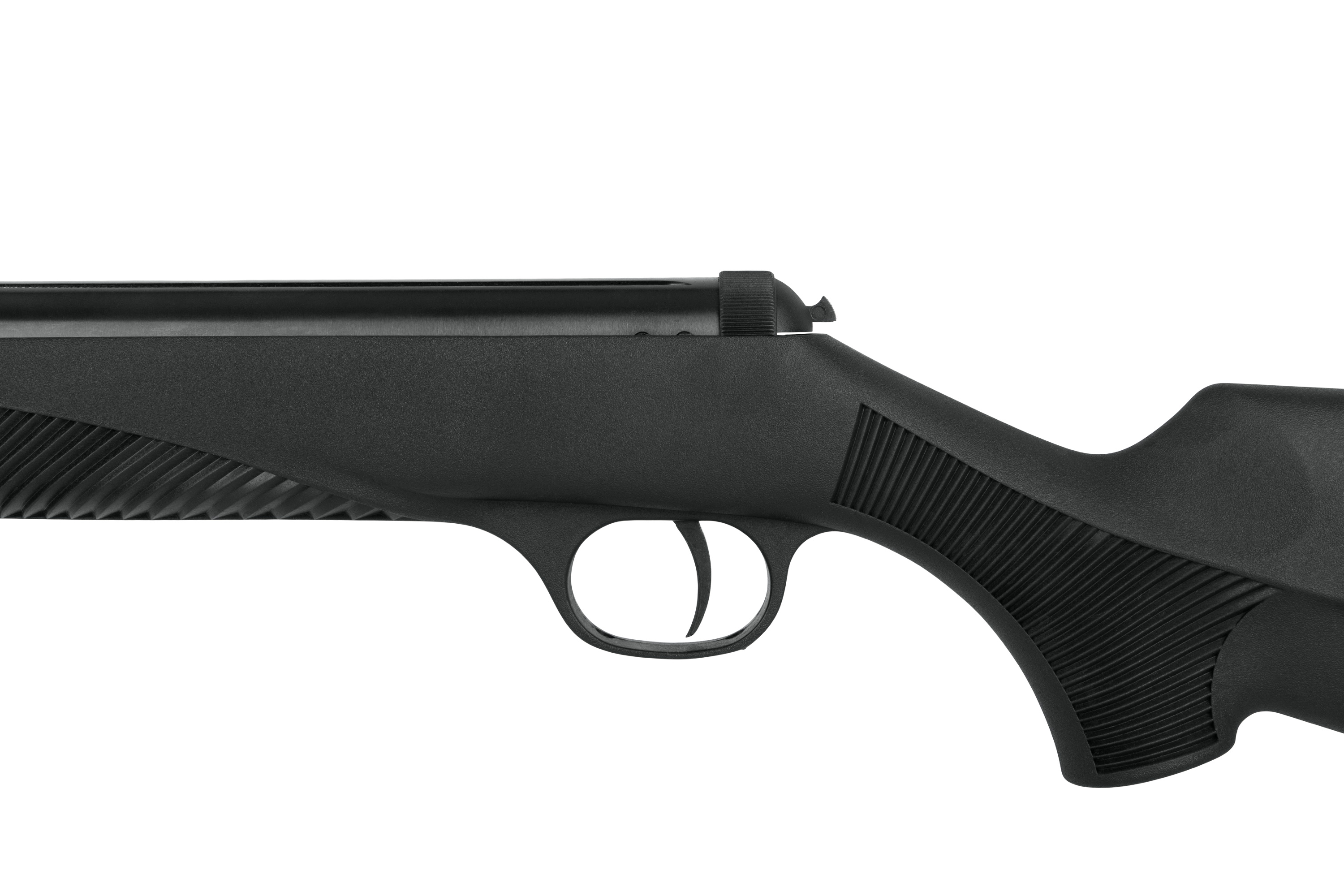 Der ergonomisch geformte Kunststoffschaft ist besonders robust und wetterbeständig. Die griffige Oberfläche sorgt für sicheren Halt, auch bei längeren Schießeinheiten. Für zusätzliche Sicherheit verfügt die DIANA Panther 34 über eine automatische Sicherung, die beim Spannen aktiviert wird.