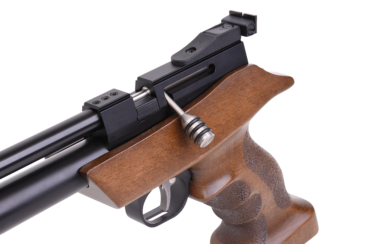 Die Druckluftpistole bietet die Möglichkeit, zwischen dem Einzelschuss Modus oder dem 9 Schuss Trommelmagazin zu wählen, um auf jede Situation vorbereitet zu sein. Außerdem ist die leichte Befüllung der DIANA Bandit 5,5mm hervorzuheben. Mit Hilfe eines Pressluft Kompressors, einer Pressluftflasche oder einer Handpumpe kann der Pressluft Tank einfach gefüllt werden, was für den Benutzer Flexibilität und Komfort bedeutet. Die Befüllung des 30 ml Tanks erfolgt mit maximal 200 BAR und über einen Foster Anschluss.