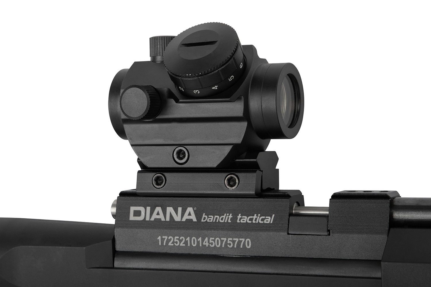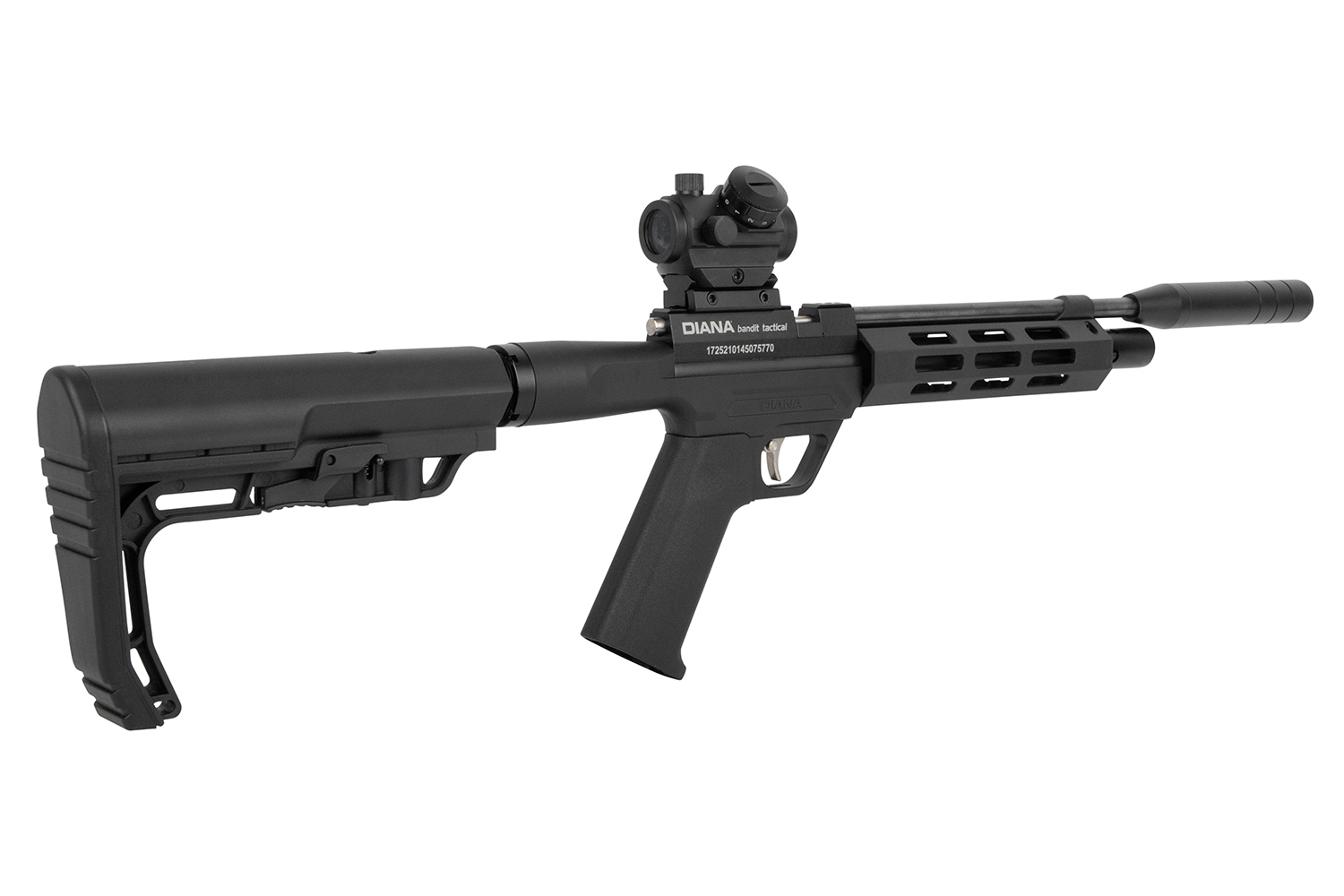 DIANA Bandit Tactical 4,5 mm – kompakte PCP mit AR-Schaft, Schalldämpfer & Red Dot