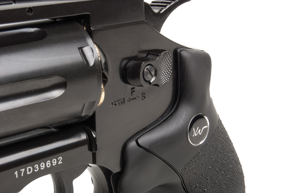 Der detailgetreue Nachbau aus dem Hause ASG mit einer Energie von ca. 1,4 Joule wird mit Co2 betrieben. Der Revolver aus Vollmetall verfügt über einen Double Action Abzug, eine verstellbare Visierung und robuste Kunststoffgriffschalen. Im Lieferumfang enthalten sind eine Montageschiene, ein Speedloader und 6 Hülsen.