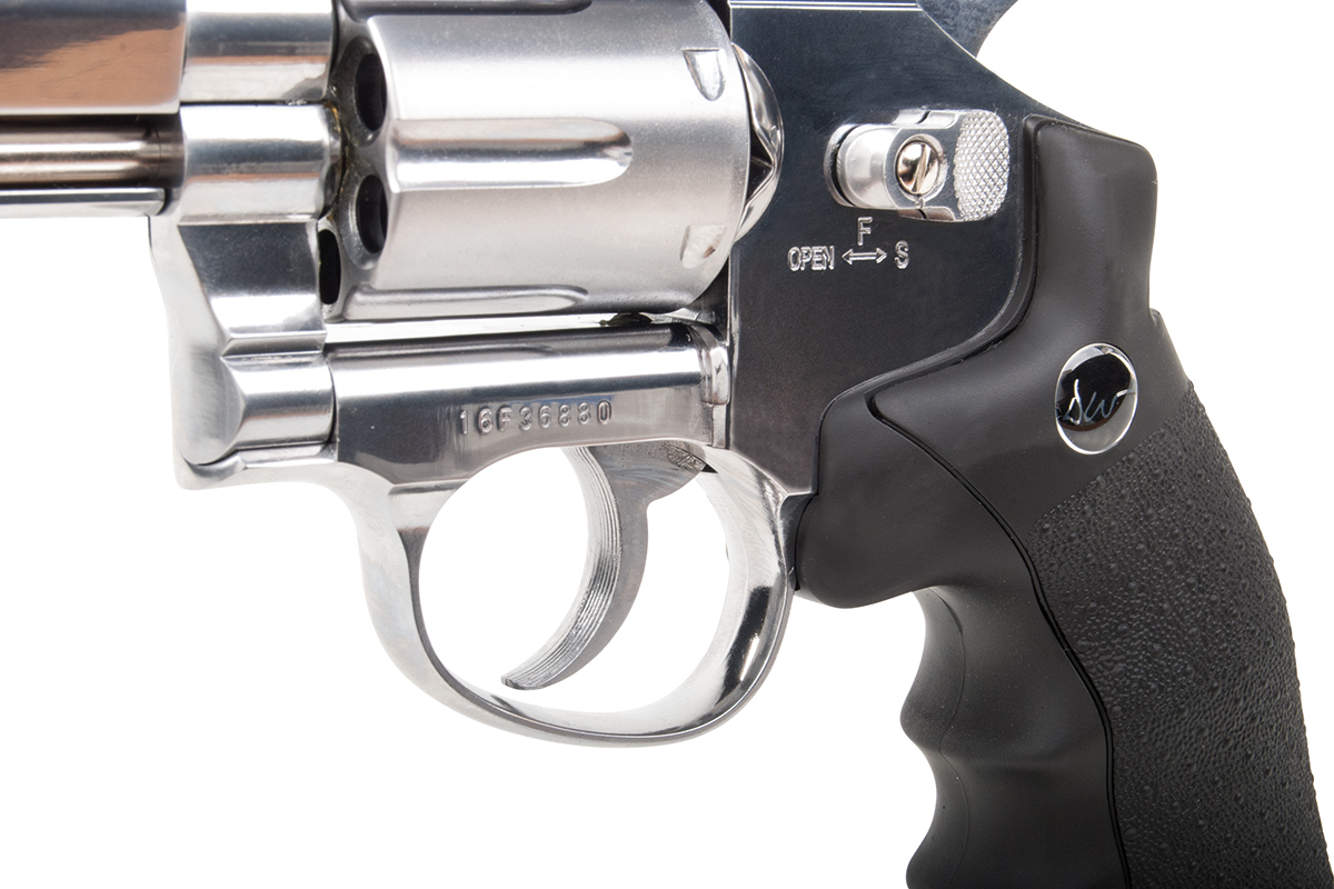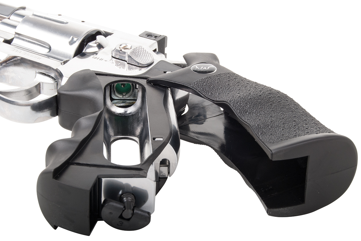 Im Kaliber 6mm BB bietet der Dan Wesson 715 Revolver nicht nur die klassische Optik, sondern auch die Präzision, die man von einer hochwertigen Airsoftwaffe erwartet. Der Co2 Revolver wird mit einer 12g Co2 Kapsel betrieben, die direkt in den ergonomisch geformten Pistolengriff eingesetzt wird. Besonders praktisch ist der in die Griffschale integrierte Werkzeugschlüssel, der das Festziehen der Co2 Kartusche erleichtert und nicht verloren gehen kann. Dank des Co2 Non Blowback-Systems bietet diese Co2 Waffe eine hohe Energieeffizienz.