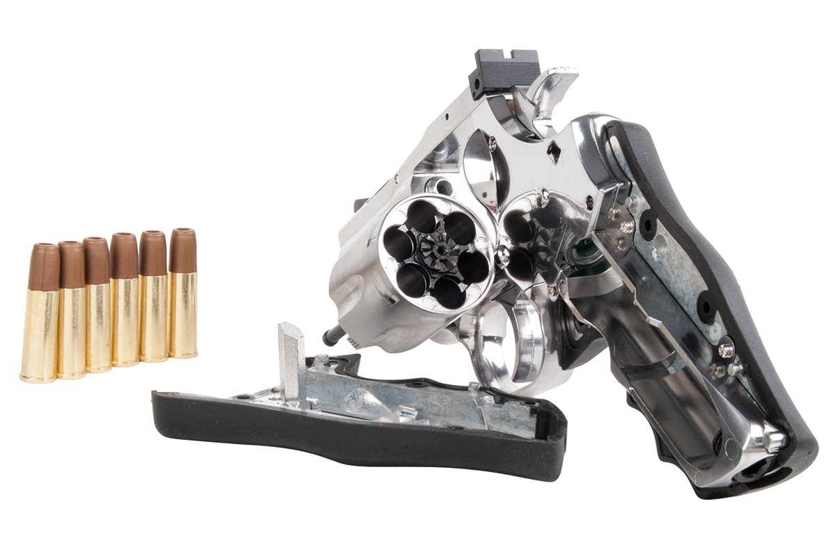 Im Lieferumfang sind ein Speedloader und 6 Hülsen enthalten. Im Griffstück befindet sich zusätzlich ein Innensechskantschlüssel, mit welchem die Co2-Kapsel ganz einfach zu installieren ist.