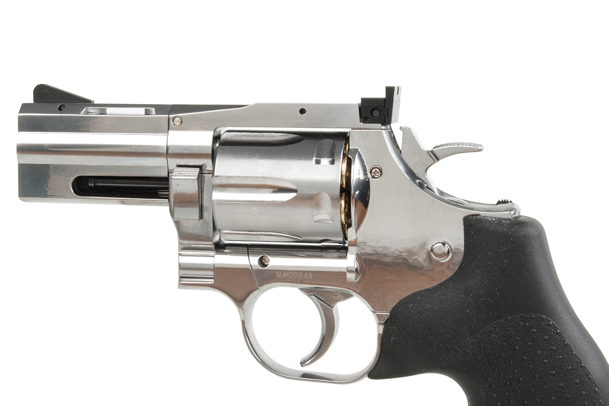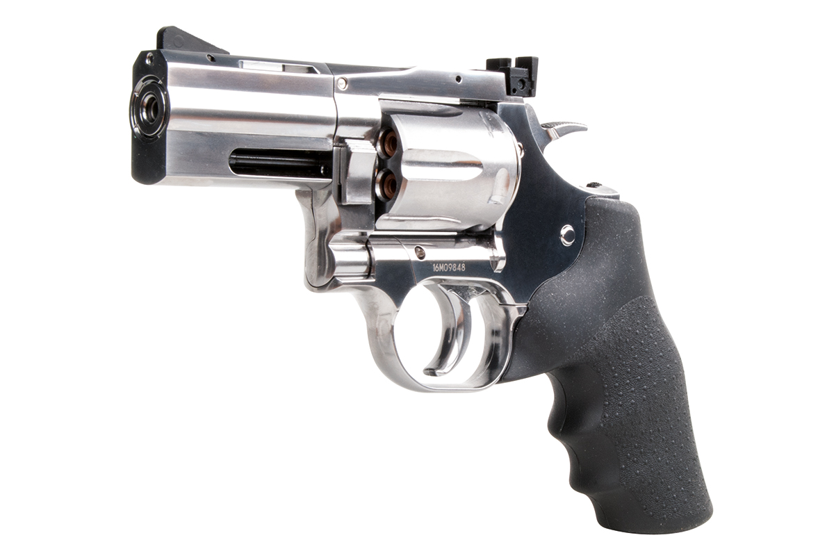 Der hochwertig verarbeitete Nachbau aus dem Hause ASG mit einer Energie von ca. 1,8 Joule wird mit CO2 betrieben. Der Revolver aus Vollmetall verfügt über eine individuelle Seriennummer, einen Double Action Abzug, eine verstellbare Visierung und ein gummiertes Griffstück im Hogue Design.