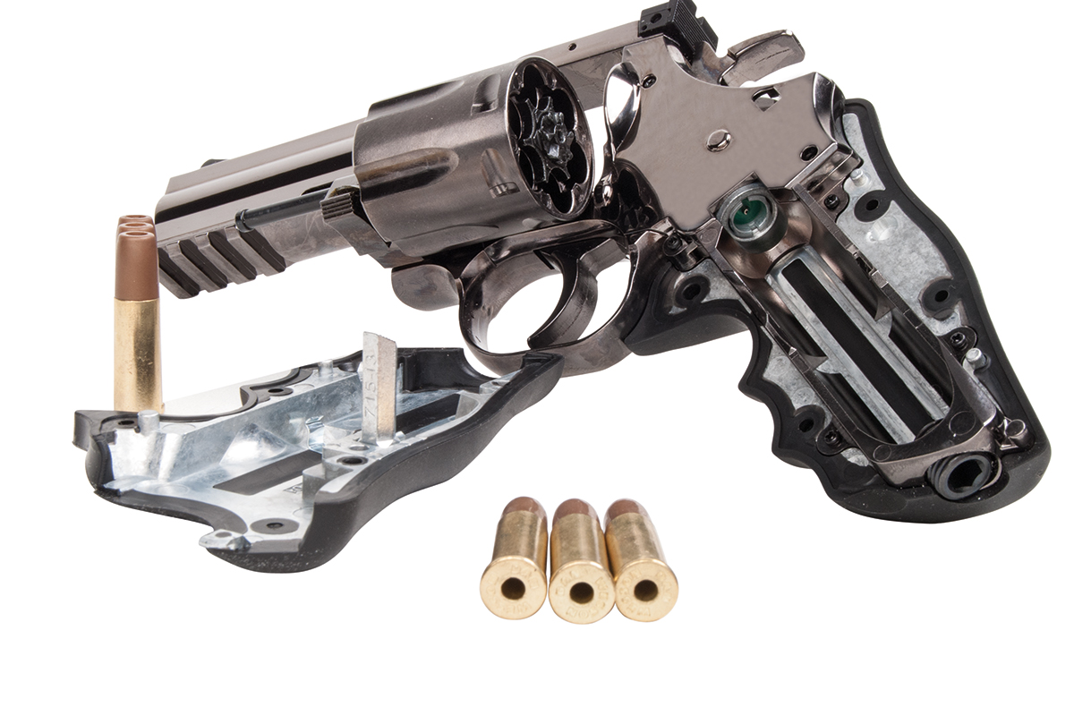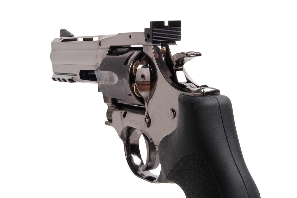 Der hochwertig verarbeitete Nachbau aus dem Hause ASG mit einer Energie von ca. 1,8 Joule wird mit CO2 betrieben. Der Revolver aus Vollmetall verfügt über eine individuelle Seriennummer, einen Double Action Abzug, eine verstellbare Visierung und ein gummiertes Griffstück im Hogue Design.
