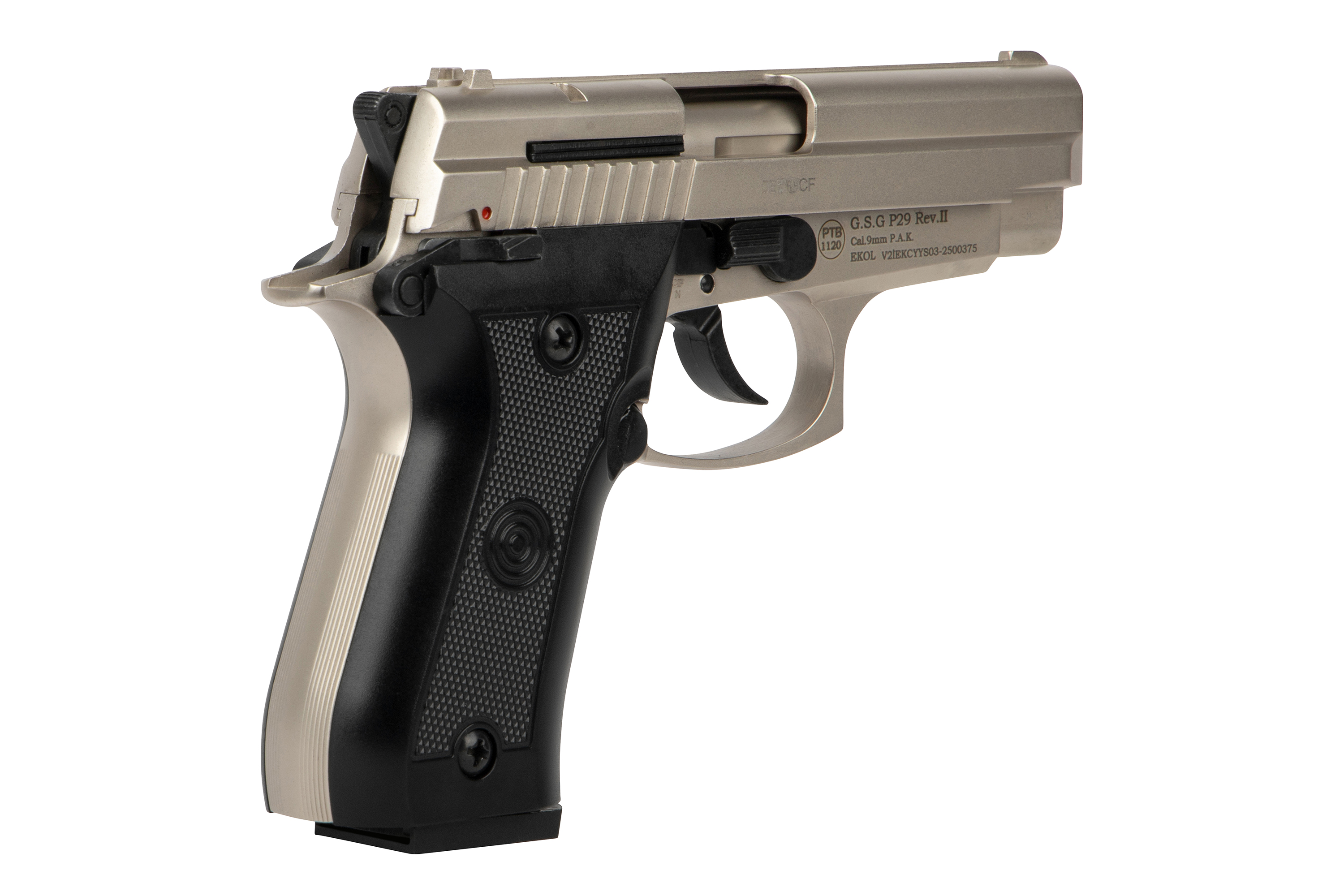 Die Ekol P29 Nickel ist eine kompakte Schreckschusspistole im Kaliber 9mm P.A.K., die durch ihre robuste Bauweise, hochwertige Verarbeitung und den edlen Nickel-Finish überzeugt. Sie eignet sich sowohl für den Einsatz an Silvester mit Pyromunition als auch für die Selbstverteidigung mit Gas- oder Pfefferpatronen.