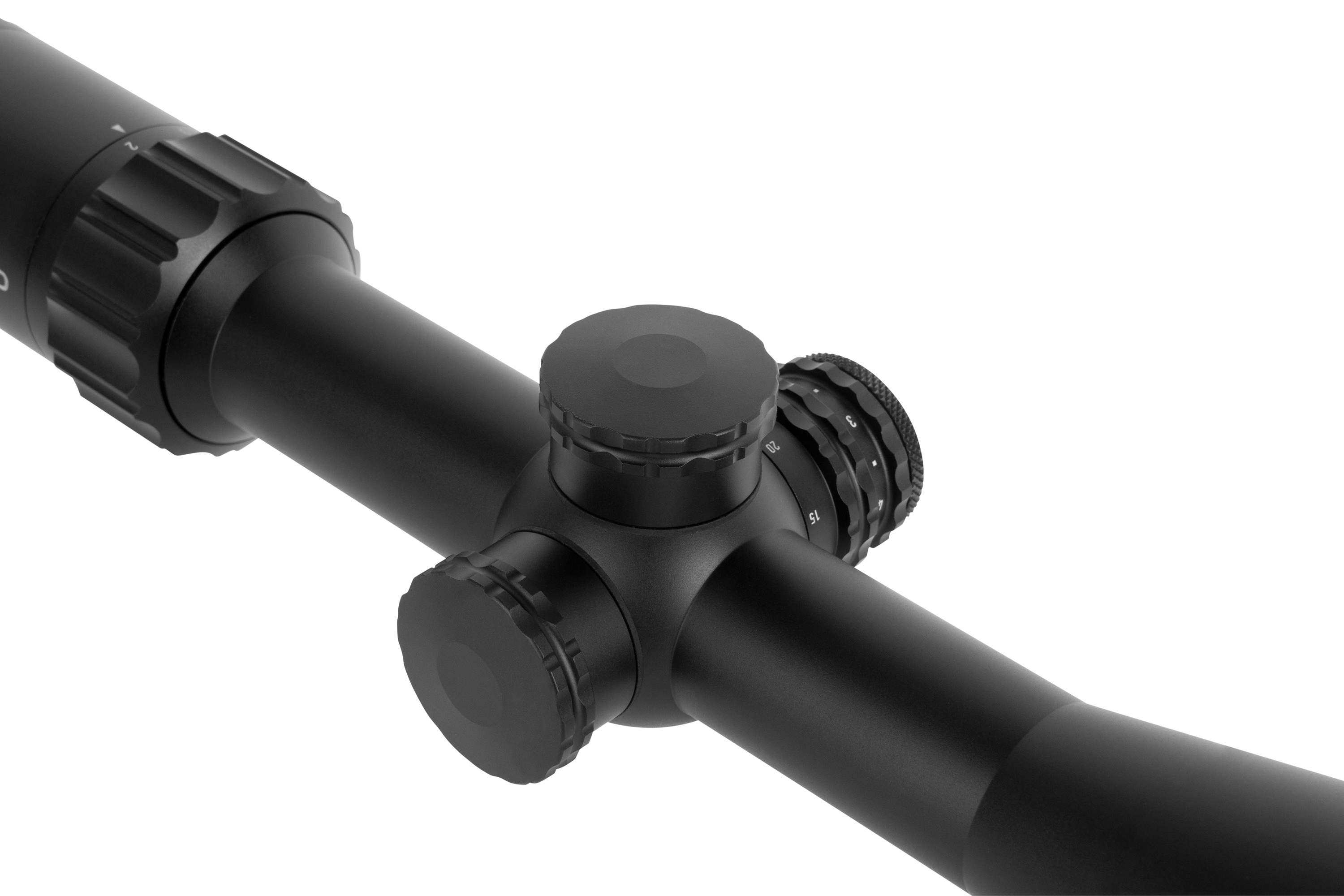 Die Mechanik wurde konsequent für höchste Ansprüche entwickelt. Die Verstelltürme aus Edelstahl sind extrem verschleißfest, lassen sich werkzeuglos bedienen und verfügen über einen Null-Stop-Mechanismus. Mit 6 MRAD pro Umdrehung und seitlicher Parallaxe von 10 m bis unendlich handelt es sich um ein leistungsstarkes Zielfernrohr mit Parallaxenausgleich, das dir volle Kontrolle auf allen Distanzen bietet. Der abnehmbare Vergrößerungshebel sorgt für zusätzliche Flexibilität im Einsatz.