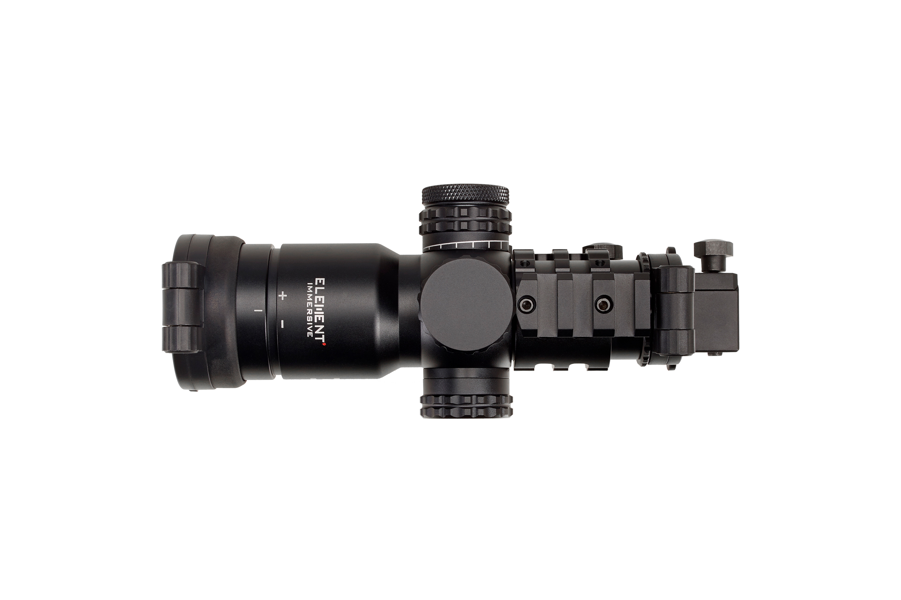Das Element Optics Immersive Luftgewehr Zielfernrohr kommt mit einer einteiligen Montage auf Picatinny /Weaver und kann von 0 bis 24 MRAD geneigt werden. Eine kleine weitere Schiene ermöglicht die zusätzliche Anbringung eines Red Dot auf der Oberseite oder auch um 45° oder 90° versetzt. Die Nutzung deiner eigenen 34mm Zielfernrohr Montage ist natürlich auch kein Problem. Im Lieferumfang ist außerdem auch eine kürzere Picatinny Montageplatte inbegriffen.