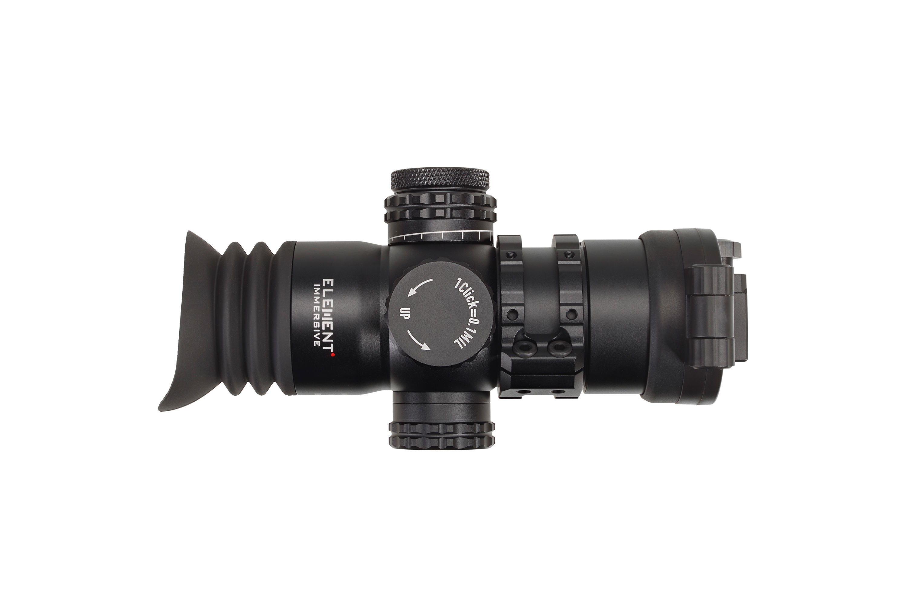 Element Optics präsentiert die neuen Immersive Zielfernrohre. Die neue Reihe unterscheidet sich deutlich von den bisherigen Reihen, denn es handelt sich erstmalig um Prismenvisiere. Solche Zielfernrohre verwenden im Gegensatz zu herkömmlichen Zieloptiken ein Glasprisma um ein Bild zu fokussieren. Hierdurch erlangt man ein extrem kompaktes Zielfernrohr, während gleichzeitig Vorteile wie ein vergrößertes Bild, geätztes Fadenkreuz und Absehen Beleuchtung erhalten bleiben. Das 10×40 verfügt über einen kurzen Augenabstand, der ein unglaubliches Sehfeld von bis zu 4x eines herkömmlichen Zielfernrohrs bei gleicher Vergrößerung ermöglicht. Es handelt sich um ein Luftgewehr Zielfernrohr, kann aber auch auf Kleinkaliber Gewehren genutzt werden.