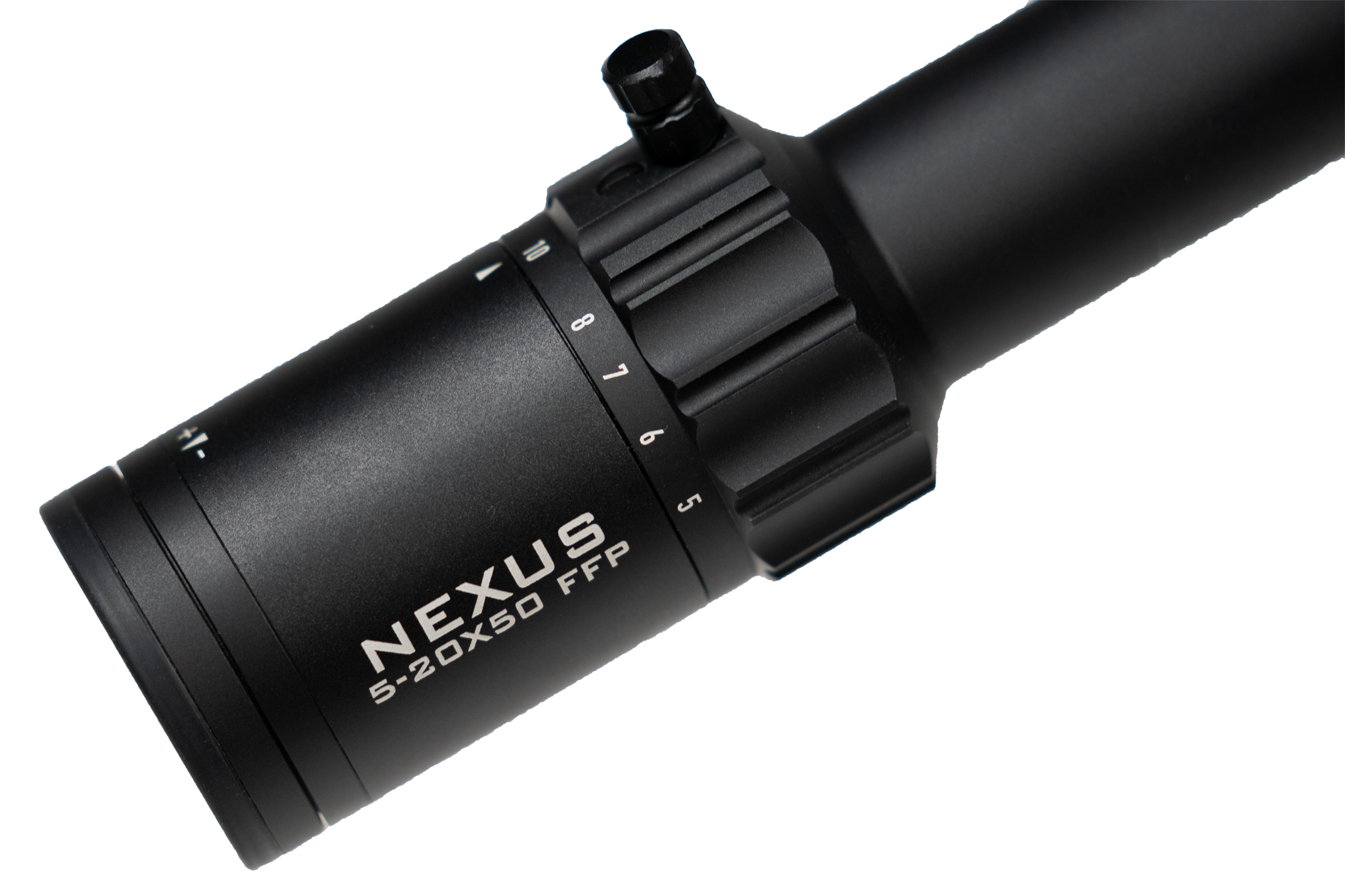Das Verstellturm System ist auf maximale Haltbarkeit und Wiederholgenauigkeit ausgelegt. Edelstahl Bauteile garantieren Langlebigkeit und präzise Klickverstellung. Die Türme lassen sich werkzeuglos justieren, bieten 20 MOA pro Umdrehung und verfügen über einen harten mechanischen Null Stopp. Der Parallaxenausgleich reicht von 10 Metern bis unendlich und ermöglicht präzise Treffer auf jede Distanz, wodurch das Nexus zu einem modernen Zielfernrohr mit Parallaxenausgleich wird. Das beleuchtete Absehen in der ersten Bildebene (FFP) sorgt dafür, dass die Skalierung bei jeder Vergrößerung konstant bleibt, ein entscheidender Vorteil für Zielfernrohre für Sportschützen, die Wert auf Präzision und Wiederholgenauigkeit legen.