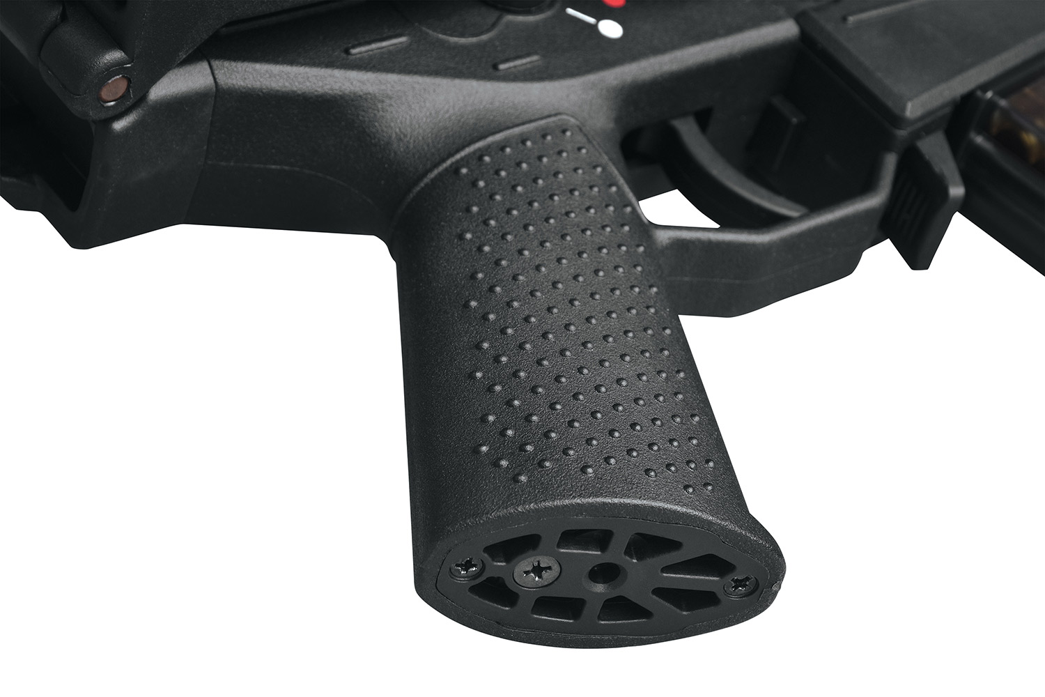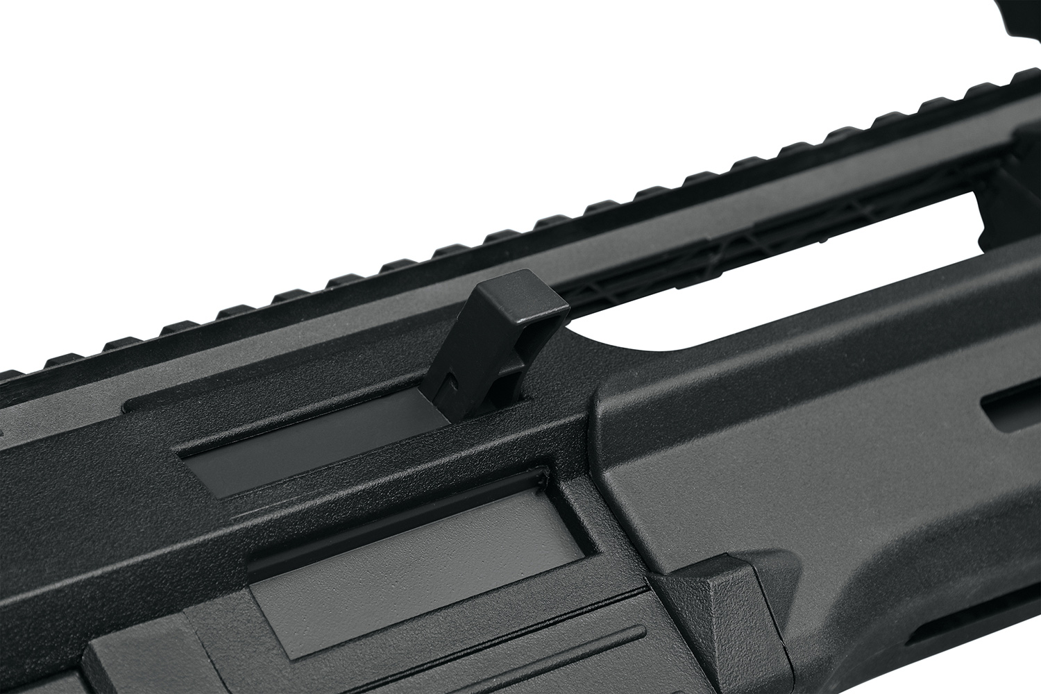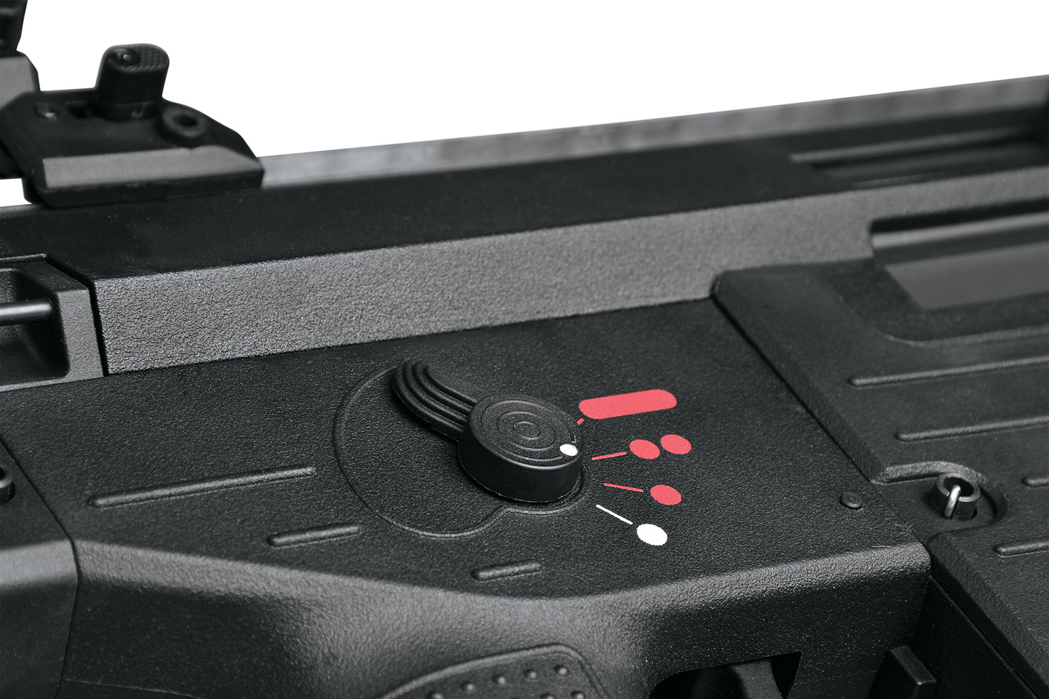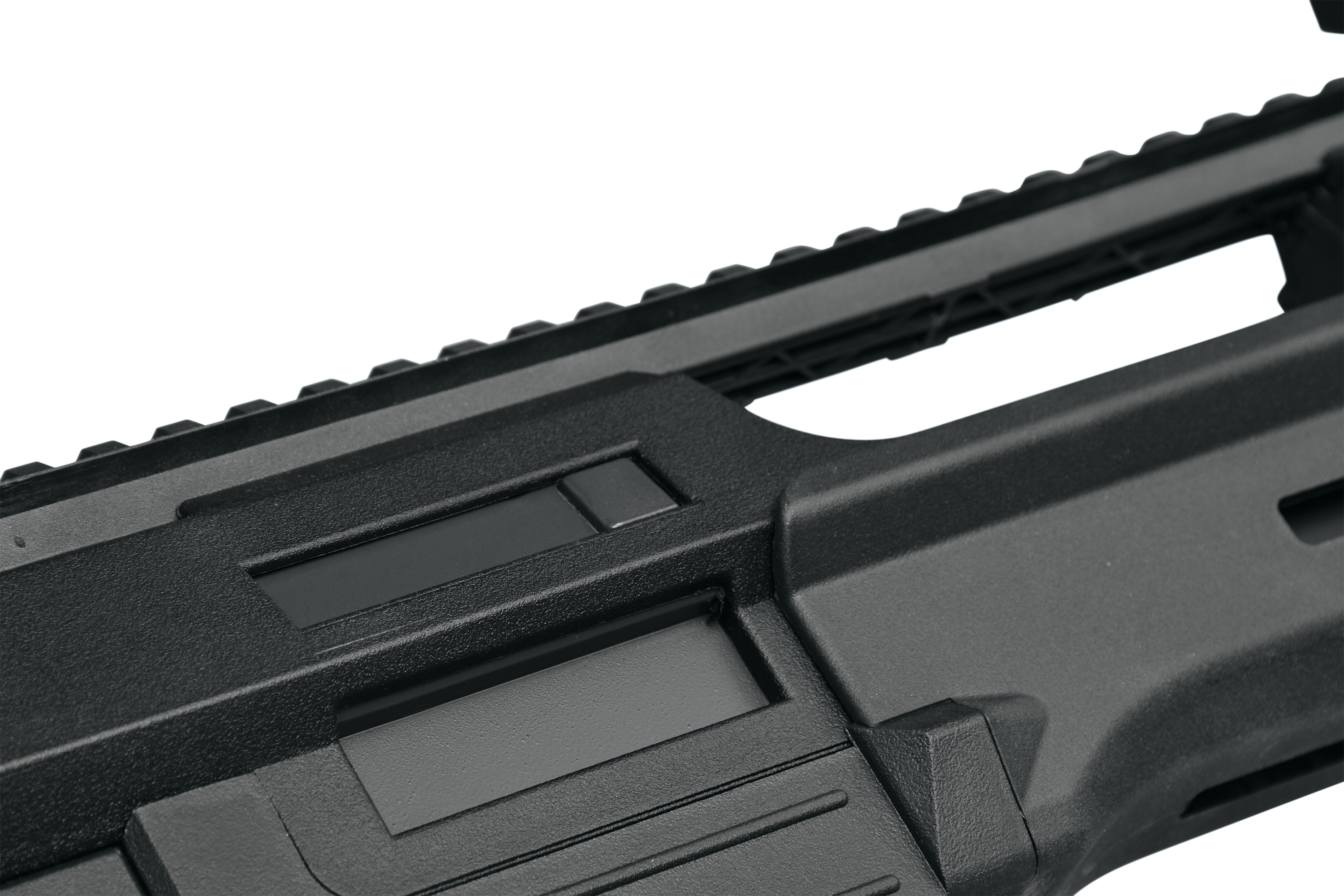 Natürlich ist auch dieses Modell mit dem integrierten Electronic Firing Control System (EFCS) von ARES ausgestattet. Mit dieser neuen Gearbox-Generation gehört der Getriebestopp der Vergangenheit an. Die intelligente Gearbox stoppt automatisch z. B. bei zu geringer Betriebsspannung. Das All-In-One Design bietet dir ein geschlossenes System mit geringem Instandsetzungsaufwand. In Verbindung mit der Programmierbox kannst du die programmierbare Chipsteuerung auf deinen gewünschten Akkutyp konfigurieren und so den Akku so vor Tiefenentladung schützen. Auch die Spin-Up-Einstellung gestaltet sich bei der neuen GSG 14 Carbine dank der integrierten Bolt-Lock-Funktion besonders einfach, denn das Verschlusssystem kann offen arretiert werden.