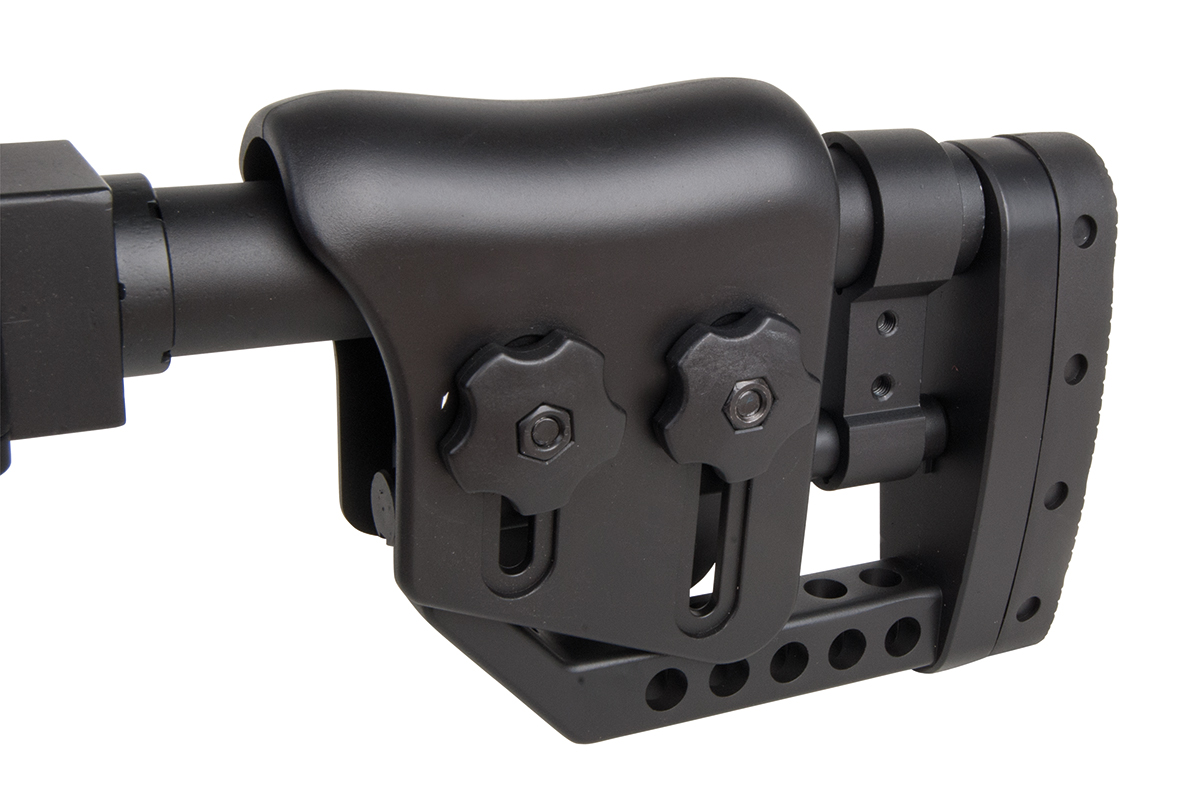 Die einklappbare Schulterstütze, die höhenverstellbare Wangenauflage sowie das integrierte Zweibein sorgen für eine ergonomische Schießposition und optimale Kontrolle – ein klarer Vorteil für Spieler, die ihr Softair Gewehr flexibel anpassen möchten.