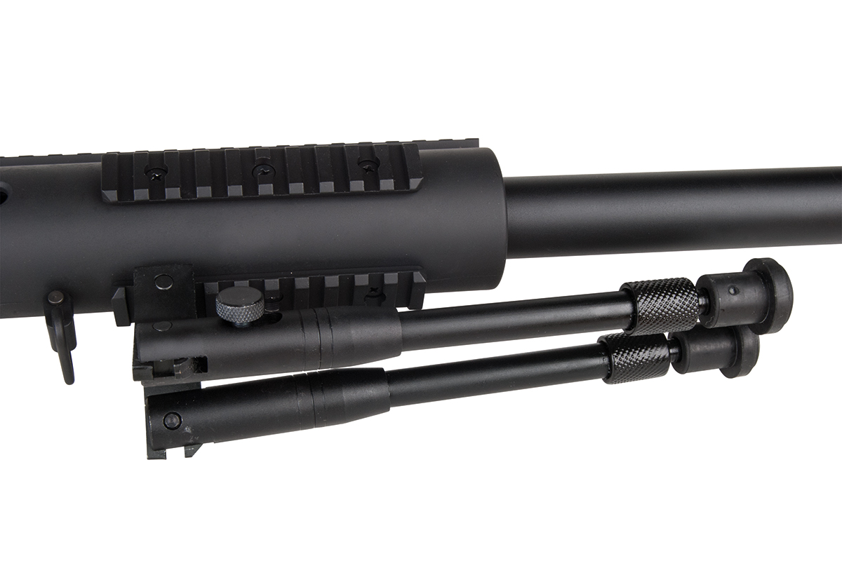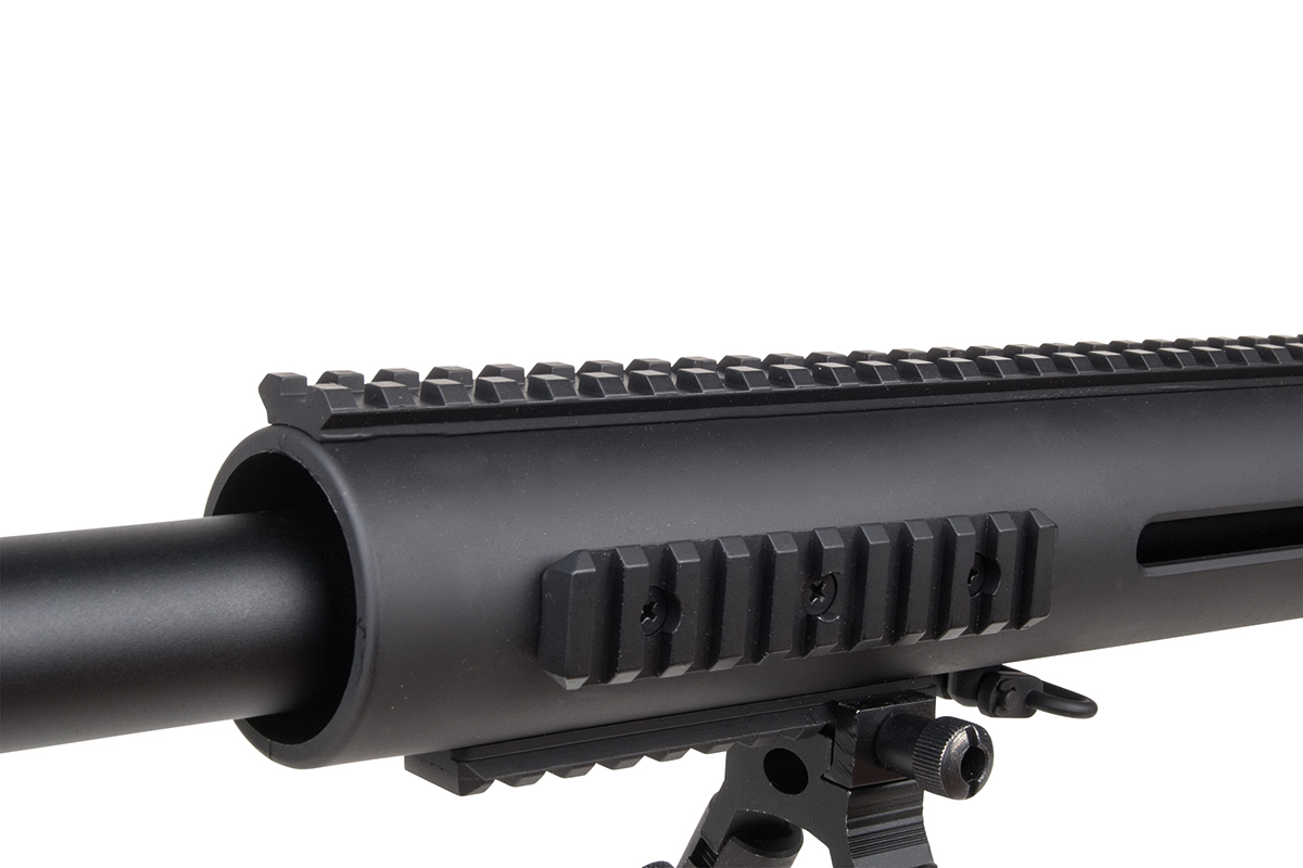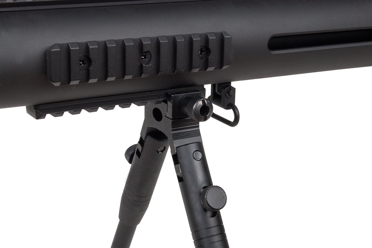 Das GSG 4410 Sniper verfügt über ein Metallmagazin mit 30 Schuss Kapazität und eine manuelle Sicherung für einen sicheren Umgang. Die Picatinny-Schienen am Vorderschaft ermöglichen die Montage von weiterem Airsoft Zubehör wie Optiken oder taktischen Anbauteilen.