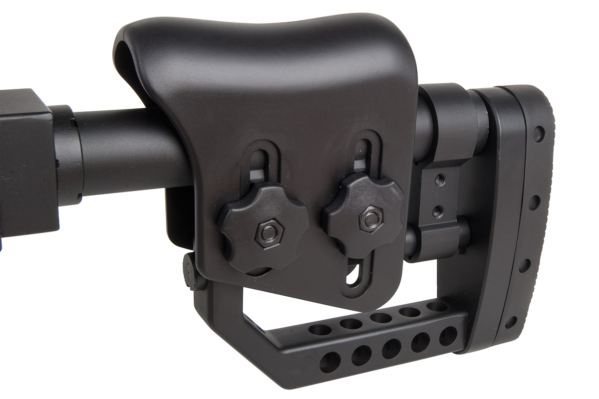 Klappbare Schulterstütze und höhenverstellbare Wangenauflage