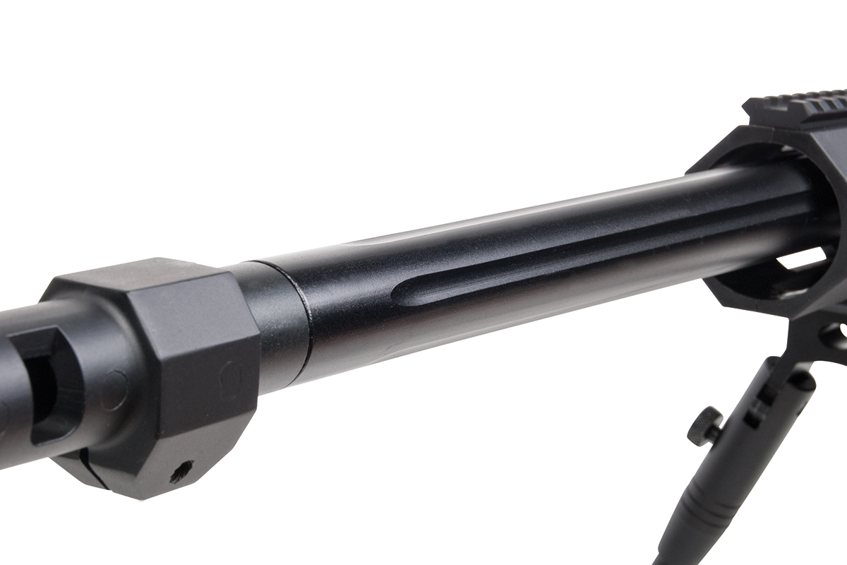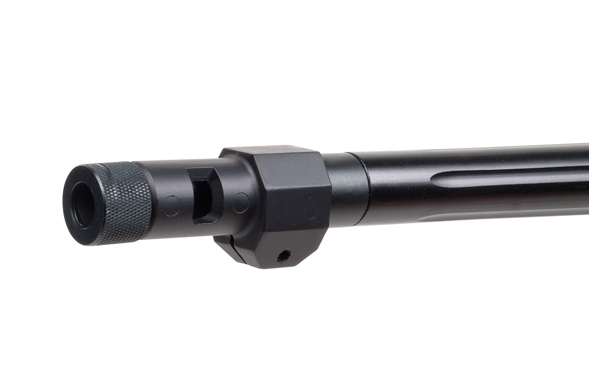 Im Lieferumfang sind außerdem ein abnehmbares, klappbares Zweibein, ein Tragegurt und ein Speedloader enthalten.