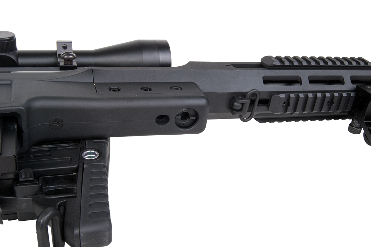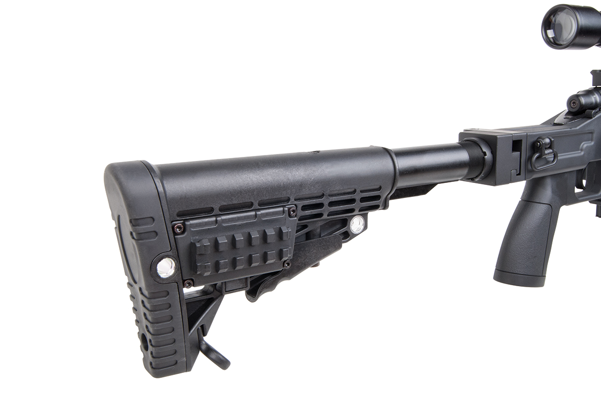 Das moderne und flexibel einsetzbare Scharfschützengewehr aus dem Hause WELL mit einer Energie von ca. 1,6 Joule verfügt über einen einklappbaren und einstellbaren Schaft, welcher den Einsatz in verschiedensten Szenarien erlaubt.