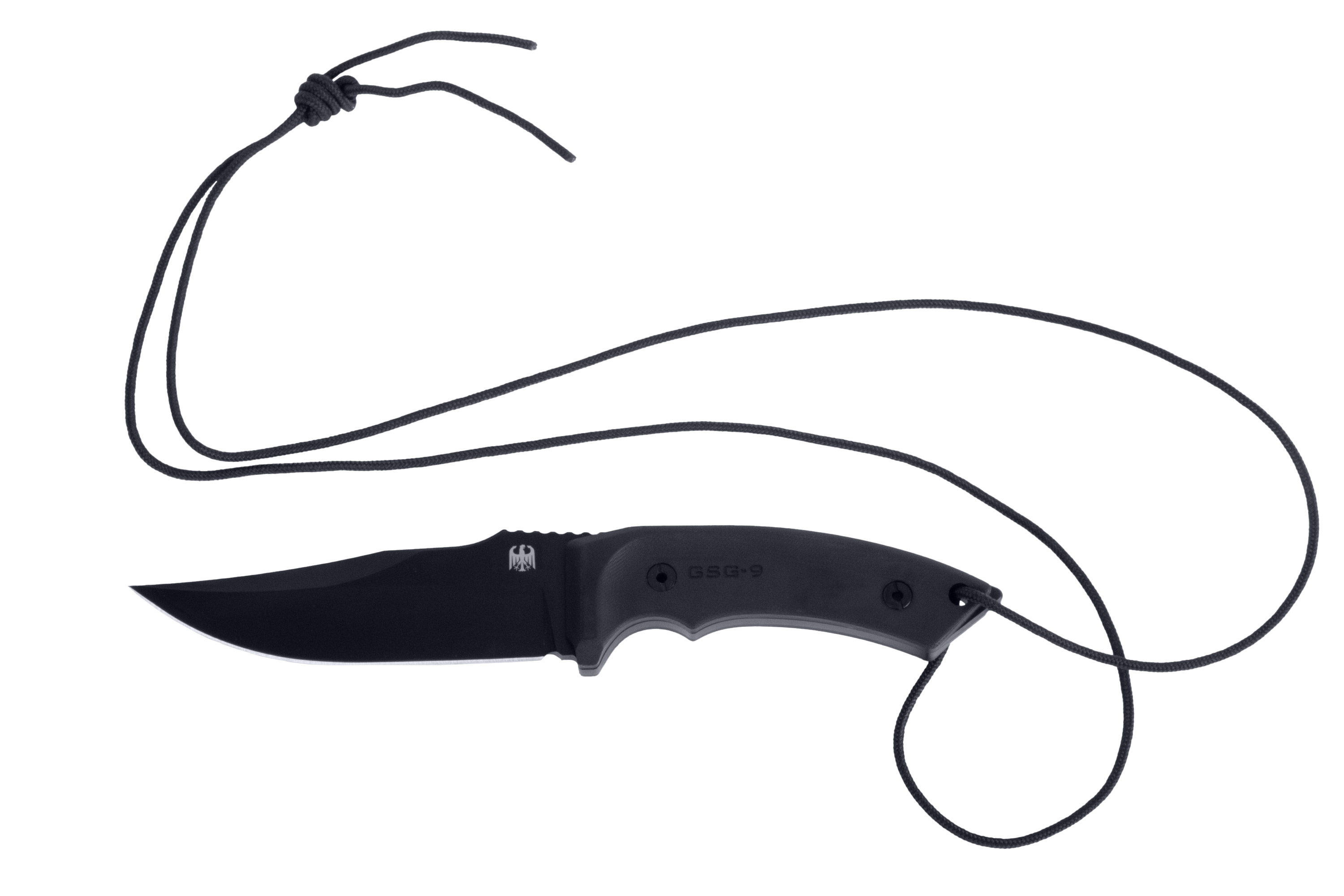 GSG-9 Einsatzmesser EM4 – Kompaktes Neck Knife mit maximaler PerformanceDu suchst ein kompaktes, zuverlässiges Einsatzmesser, das dich im Alltag, beim Outdoor-Abenteuer oder im professionellen Einsatz nicht im Stich lässt? Das GSG-9 Einsatzmesser EM4 ist ein durchdachtes Neck Knife aus D2-Stahl, das Robustheit, Schärfe und Führigkeit perfekt kombiniert.Hochwertiger D2-Stahl – Langlebig & schnitthaltigDie feststehende Klinge des EM4 besteht aus bewährtem D2-Stahl – bekannt für seine hohe Verschleißfestigkeit und ausgezeichnete Schnitthaltigkeit. Mit einem Härtegrad von 58–61 HRC bietet dir das Messer eine starke Balance aus Stabilität und langanhaltender Schärfe. Die 39 mm Klingenlänge macht das EM4 besonders führig und präzise.Robuste Beschichtung für harte EinsätzeDie schwarze Beschichtung schützt die Klinge zuverlässig vor äußeren Einflüssen und unterstreicht gleichzeitig den taktischen Look. So bleibt dein Messer auch bei intensiver Nutzung widerstandsfähig und einsatzbereit.Der ergonomisch geformte Griff aus G10 sorgt für optimalen Grip – selbst bei Nässe oder mit Handschuhen. Das robuste Verbundmaterial ist extrem widerstandsfähig, temperaturunempfindlich und langlebig. Du hast jederzeit volle Kontrolle über dein Messer.Als Neck Knife konzipiert, trägst du das EM4 bequem und griffbereit am Hals oder verdeckt unter der Kleidung.Im Lieferumfang enthalten sind:Passgenaue Kydexscheide für sicheren HaltKugelkette für komfortables TragenSo ist dein GSG-9 EM4 immer schnell einsatzbereit – ob im Outdoor-Bereich, beim Camping, auf Tour oder im professionellen Umfeld.Wenn du ein kompaktes Einsatzmesser mit Profi-Anspruch suchst, ist das GSG-9 Neck Knife EM4 die perfekte Wahl. Robust, scharf und jederzeit einsatzbereit. Bestell dir jetzt dein GSG-9 Einsatzmesser EM4 im ActionShop24!