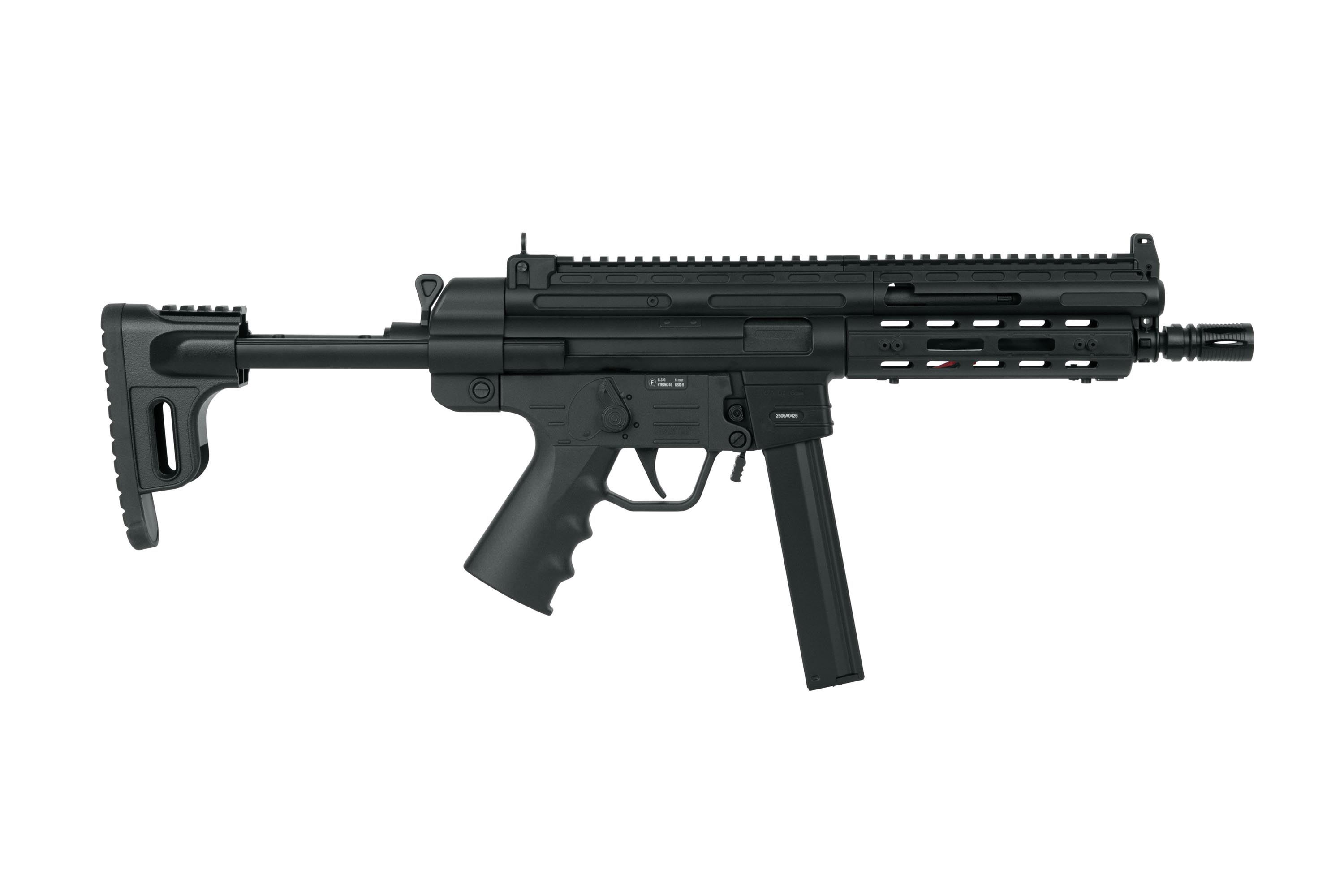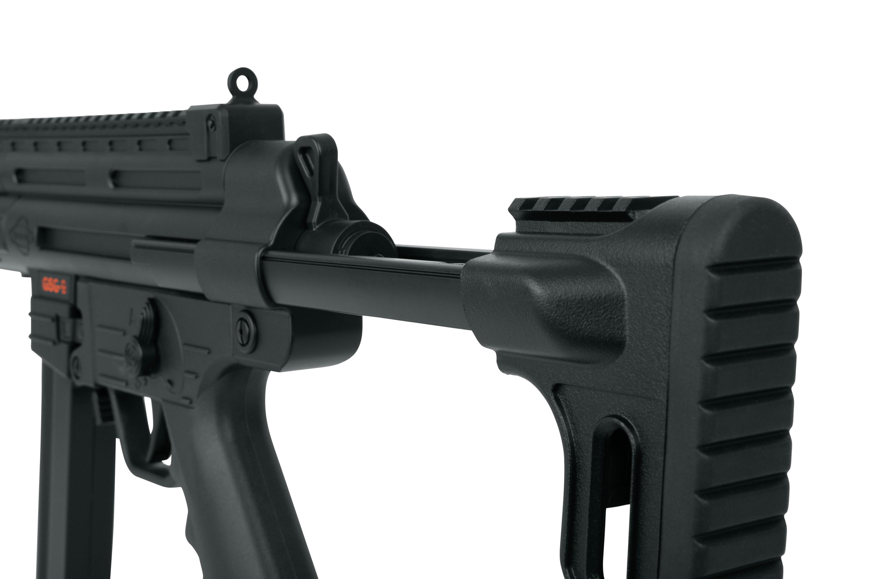 Die verstellbare Schulterstütze ermöglicht eine schnelle Anpassung an Körpergröße und Spielstil. Wichtige Bedienelemente sind beidseitig ausgelegt oder umsetzbar, wodurch die GSG-9 S-AEG sowohl für Rechts- als auch für Linkshänder optimal geeignet ist.