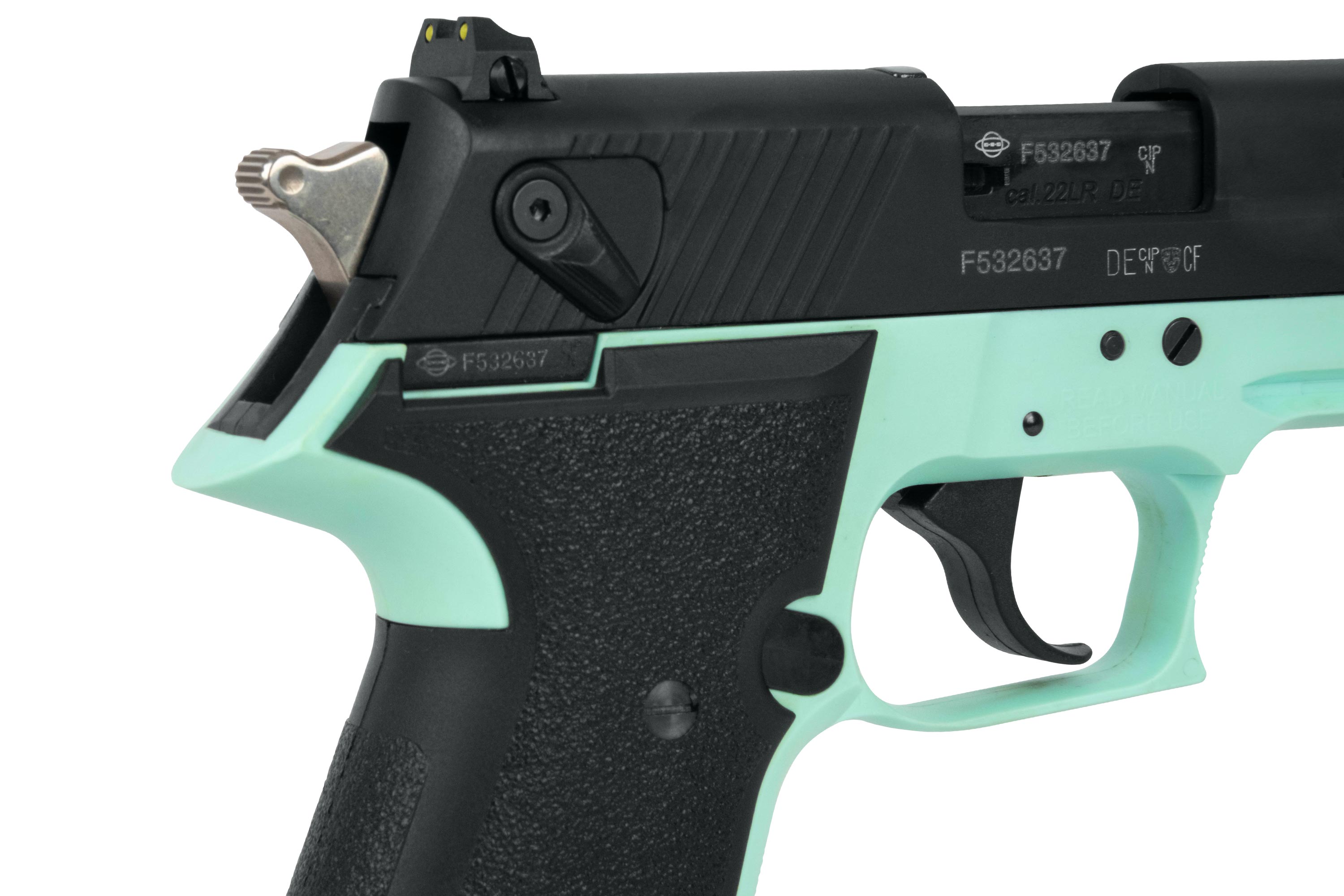 Bei ActionShop24 bekommst du die GSG FireFly .22 lr in verschiedenen Farbvarianten – die Mint-Version überzeugt dabei mit einem frischen, modernen Look und bewährter GSG-Qualität.