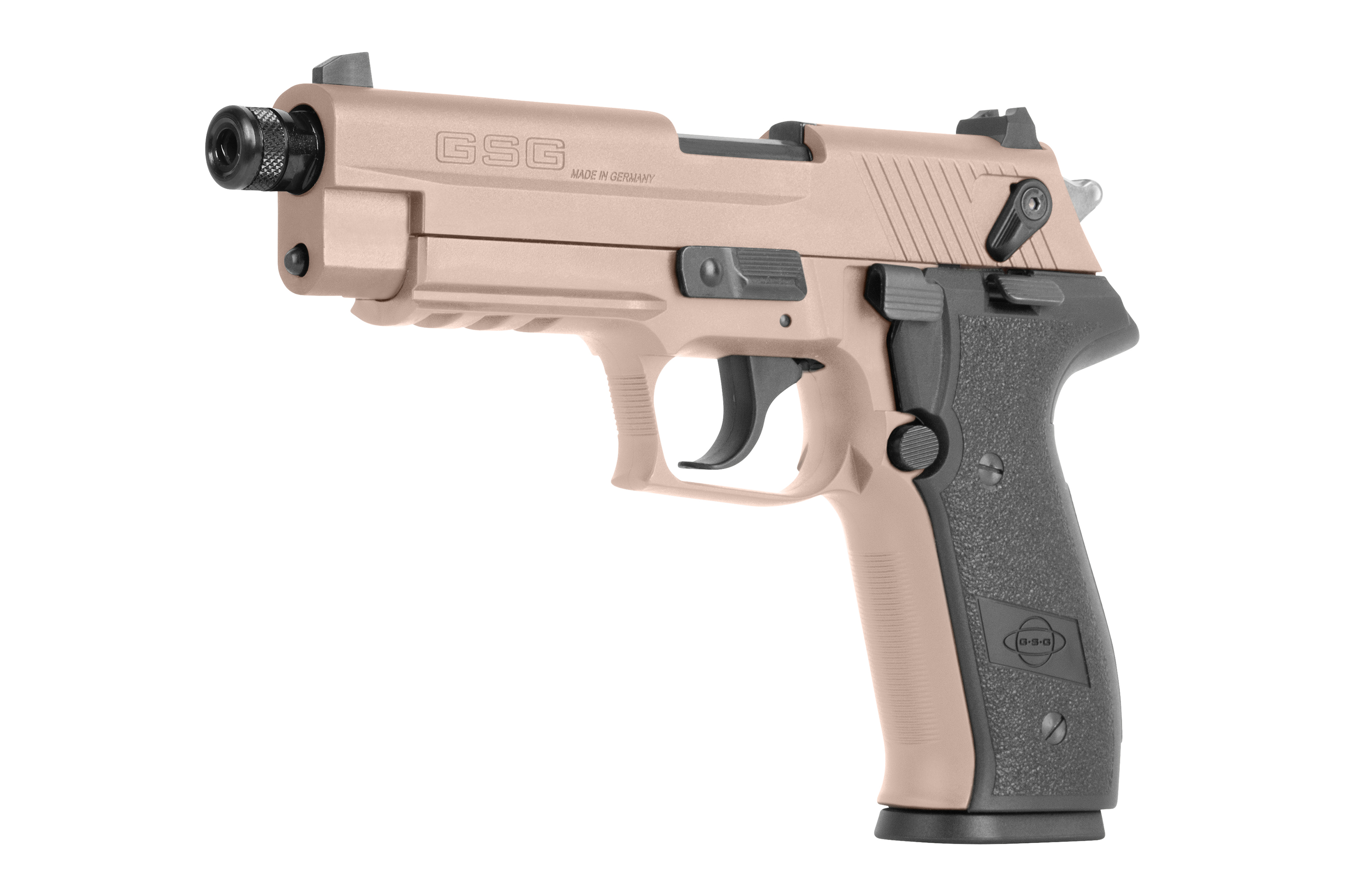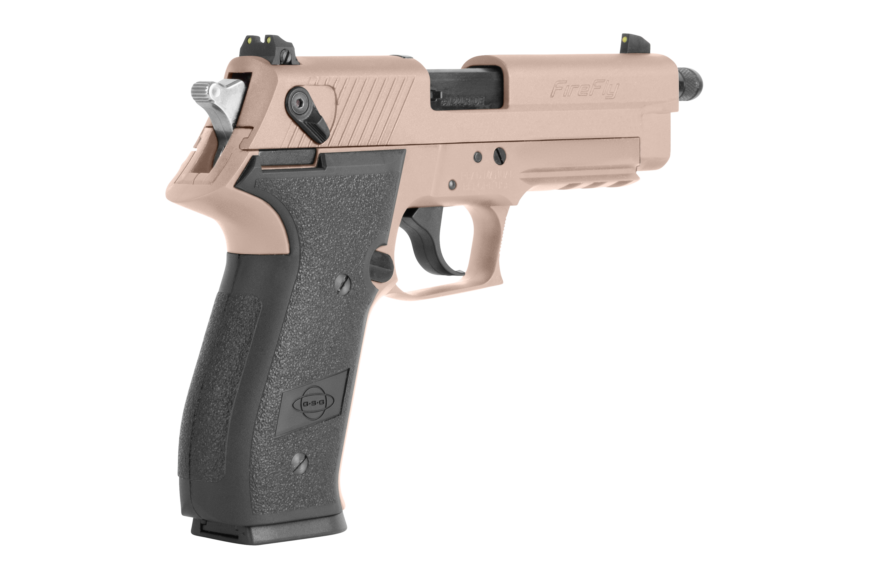Bei uns im Action-Shop24 kannst du die GSG Fire Fly im cal..22lr in den Farben Schwarz, OD Green, US Tan, Pink, Burnt Bronze, Rosé Gold und auch als SD Version mit Laufverlängerung kaufen.