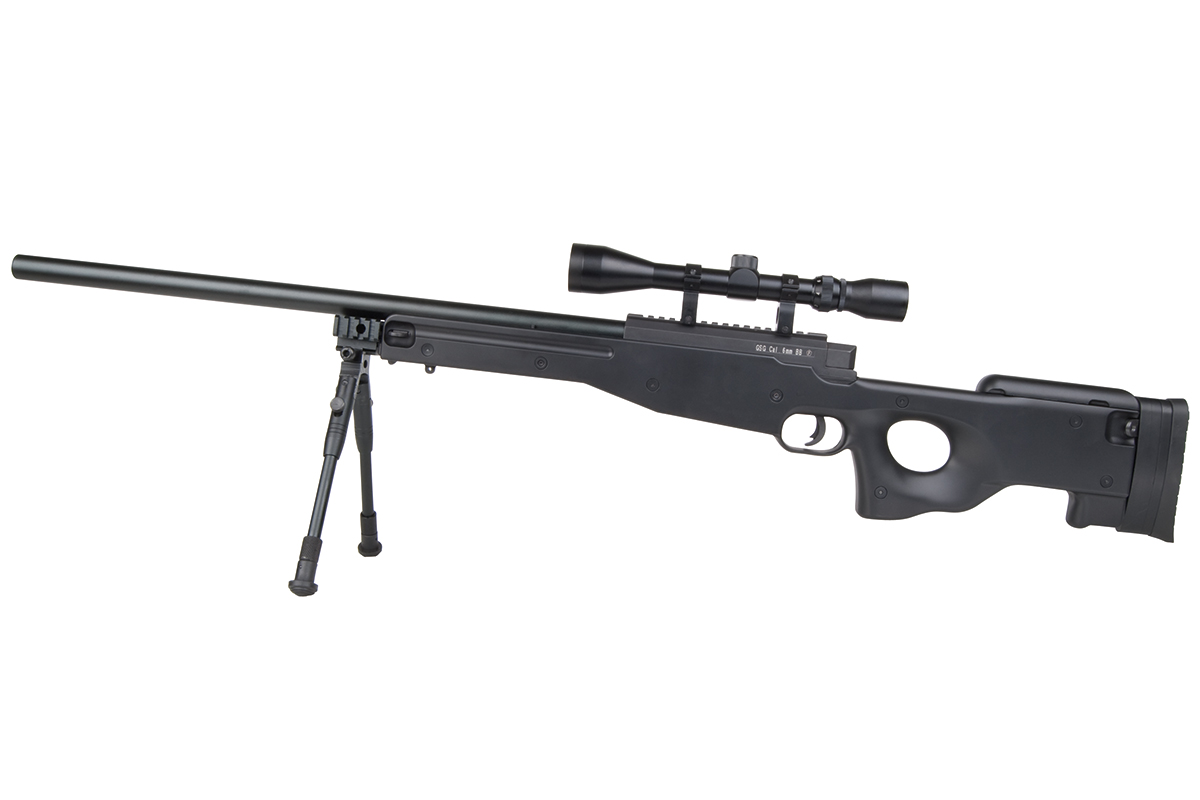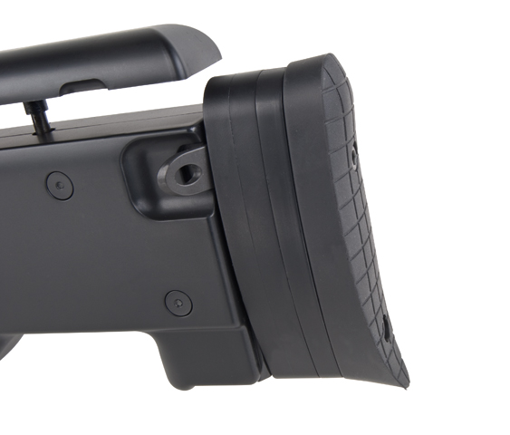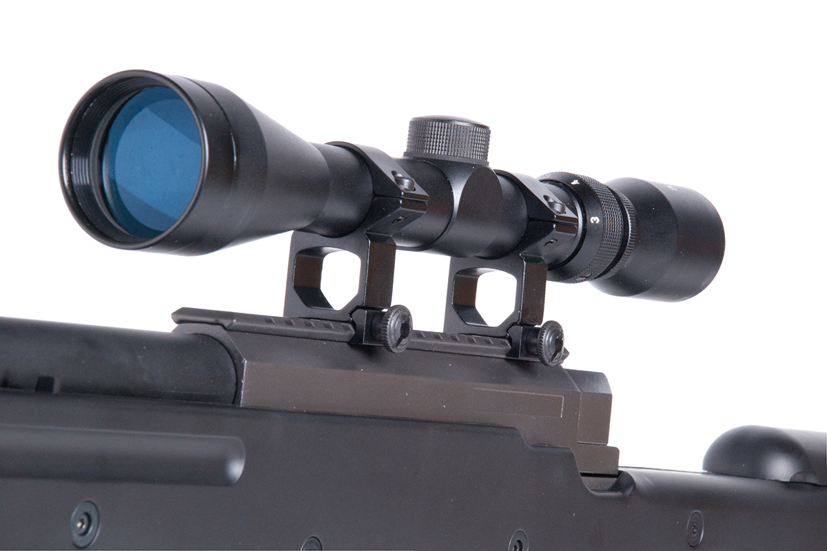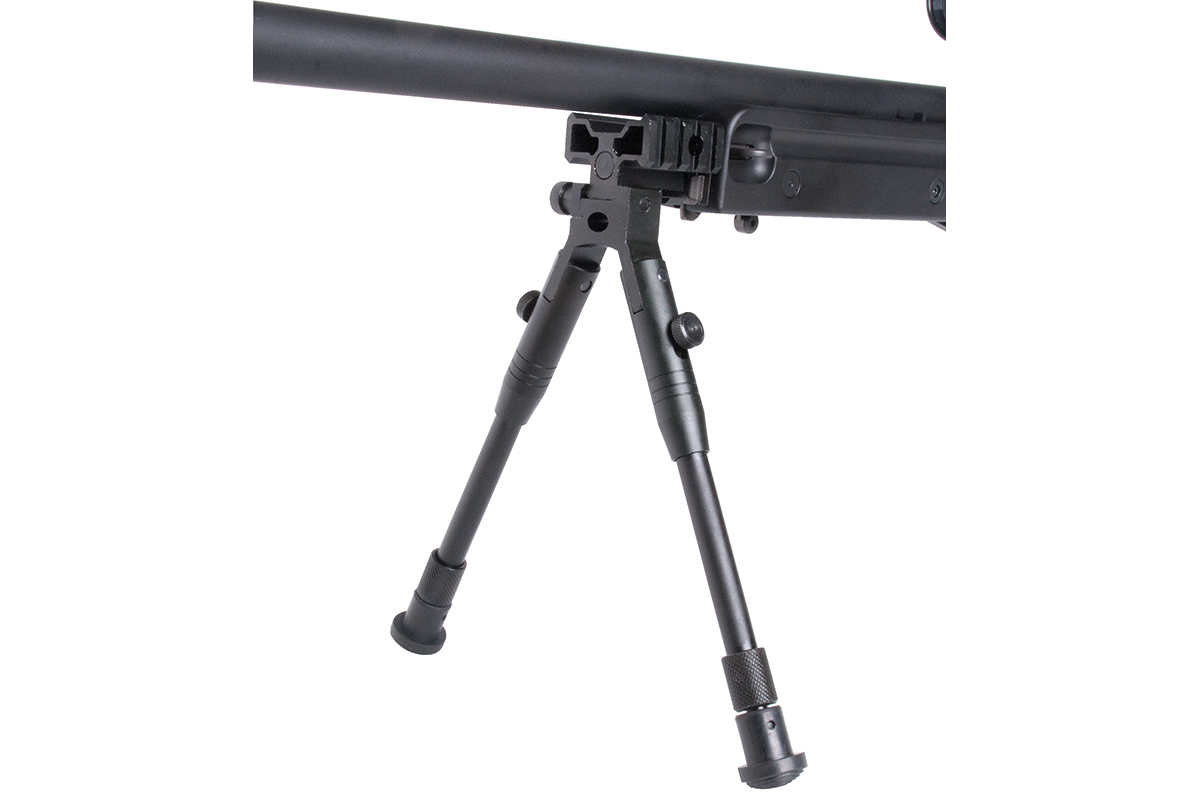 Der sehr gelungene Nachbau mit Federdrucksystem und einer Energie von ca. 1,8 Joule verfügt über einen festen Lochschaft, ein abnehmbares Zweibein, ein hochwertiges Zielfernrohr 3-9x40, eine verstellbare Wangenauflage und eine Railschienn.