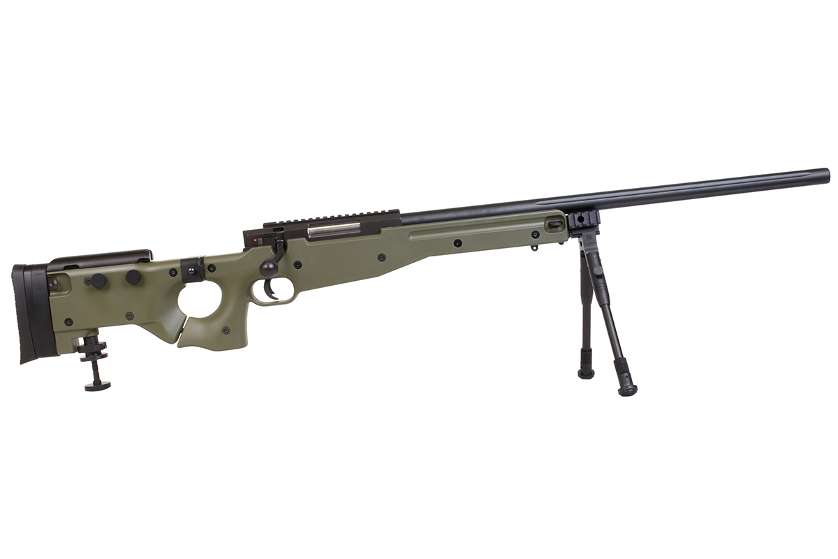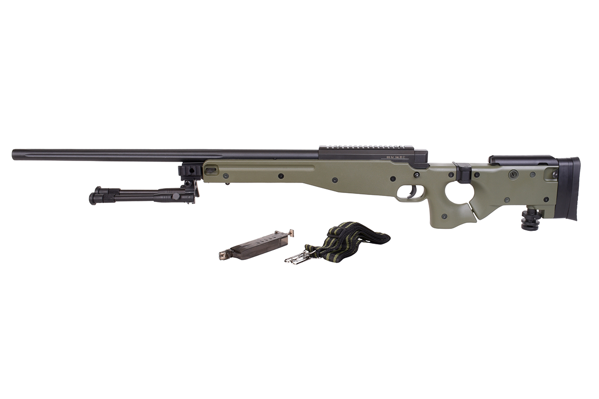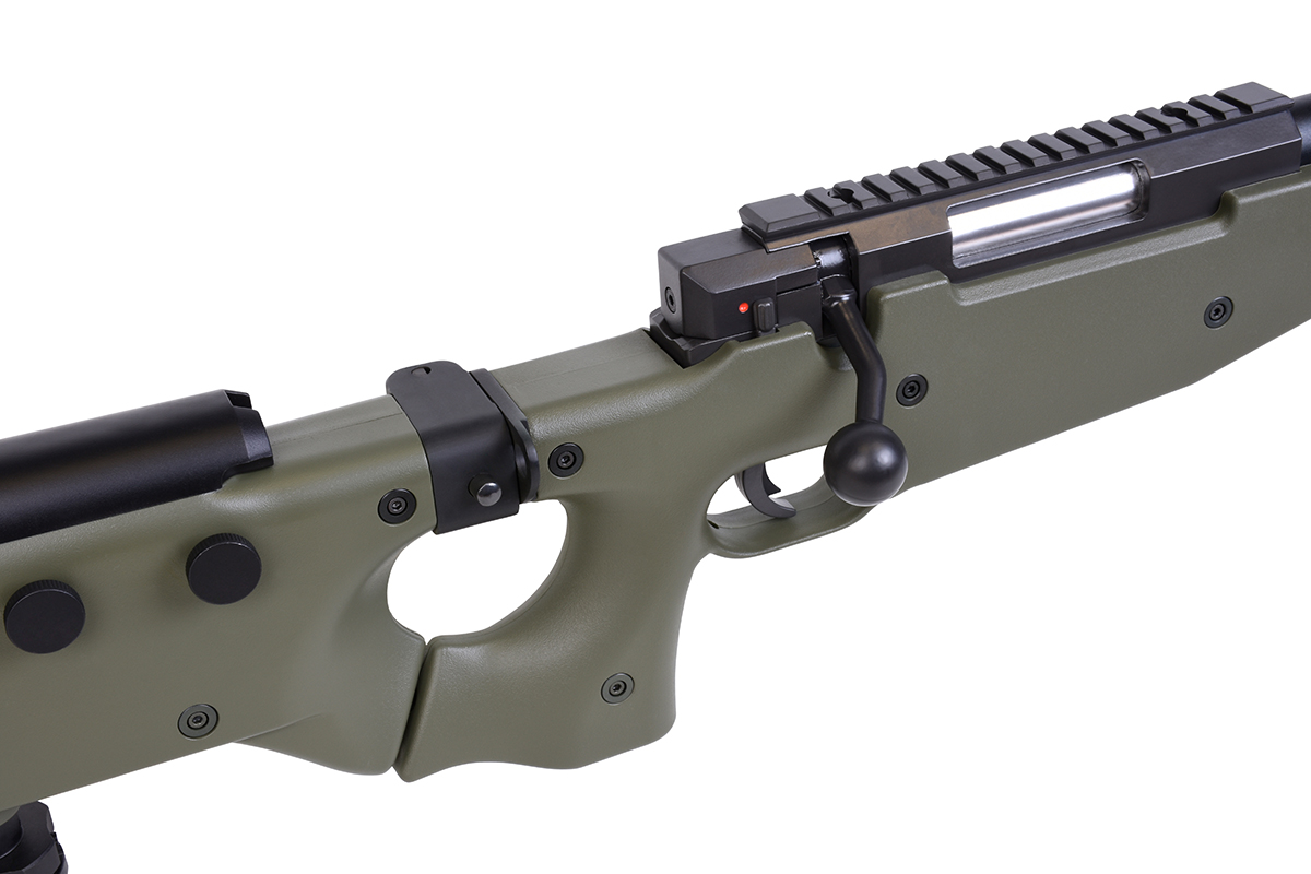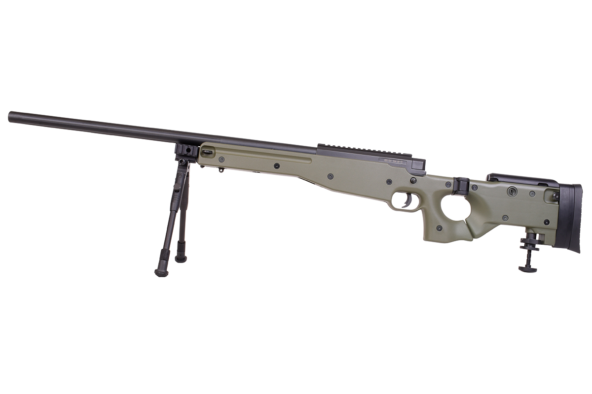 Der sehr gelungene Nachbau mit Federdrucksystem und einer Energie von ca. 1,7 Joule verfügt über einen einstellbare Schulterstütze, einen Klappschaft, eine Railschiene, eine verstellbare Wangenauflage, eine Abzugssicherung, einen einstellbaren Erddorn und das bewährte Spin-Up System für Präzision auf höchstem Niveau.