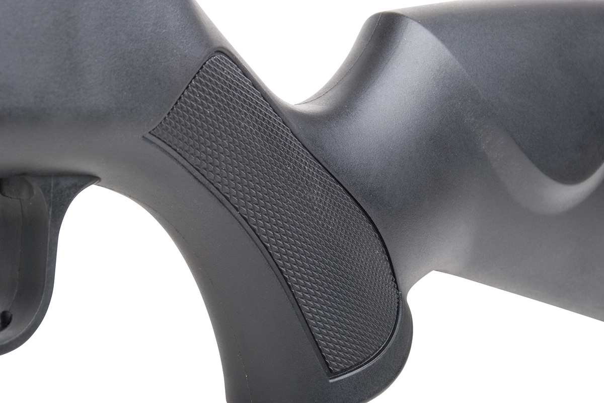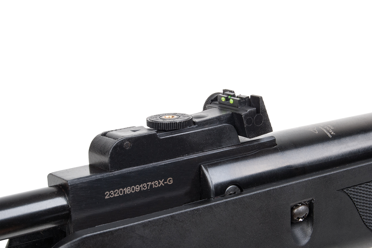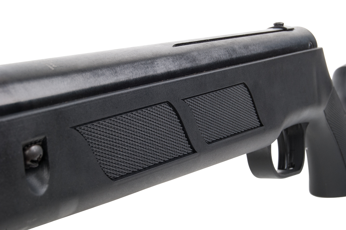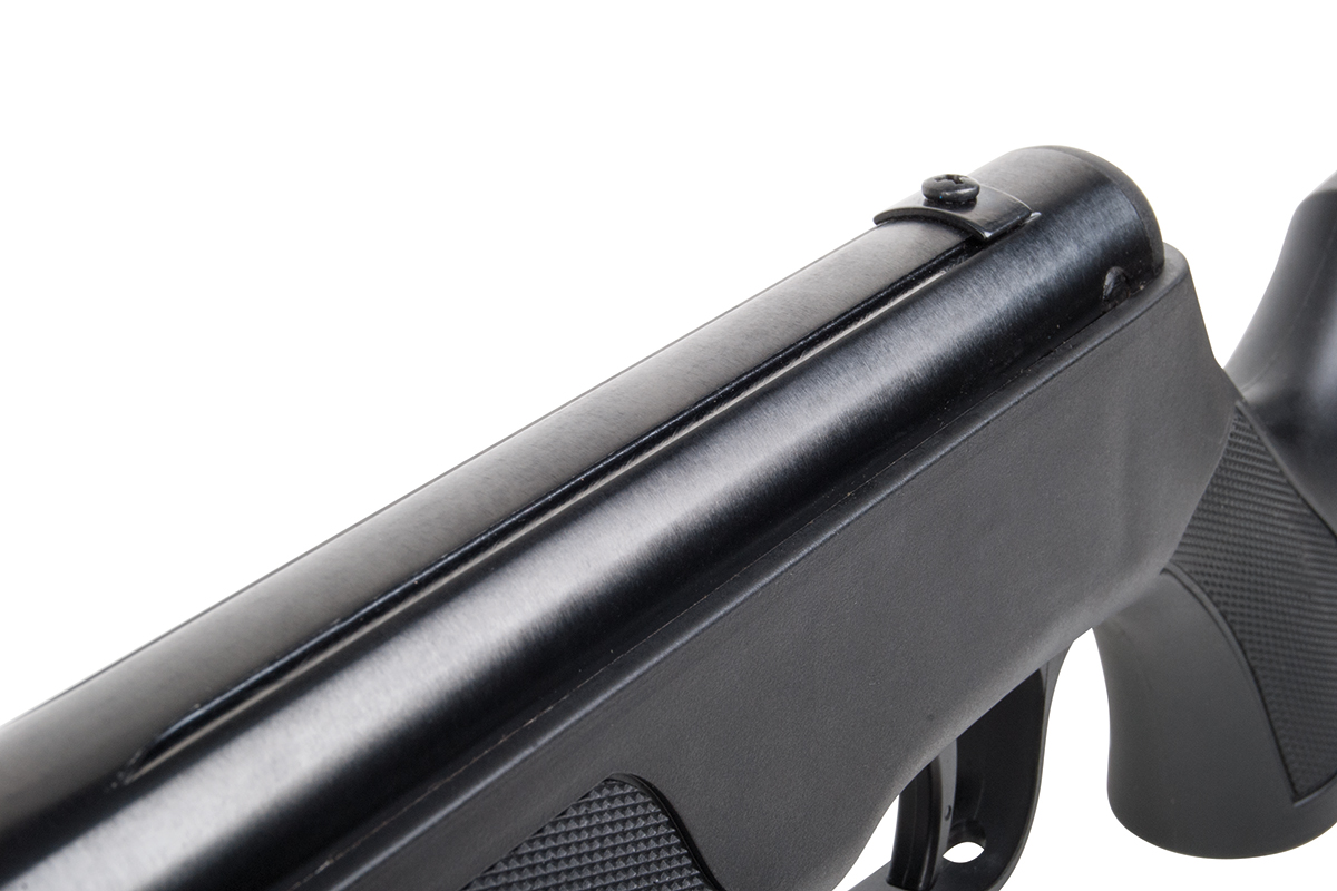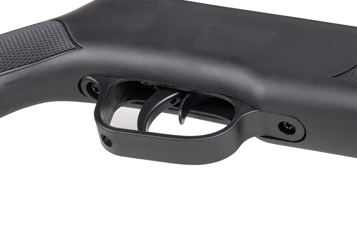 Das GSG SR1000S ist ein klassisches Knicklauf-Gewehr, ideal für Einsteiger. Das recht hohe Gewicht vermittelt trotz des Kunststoffschaftes ein hochwertiges Empfinden. Das Modell verfügt über eine manuelle Sicherung, eine einstellbare hintere Visierung, einen integrierten Silencer, Fischhautmuster am Griffstück, eine gefräste 11 mm-Prismenschiene und eine gummierte Schaftkappe.