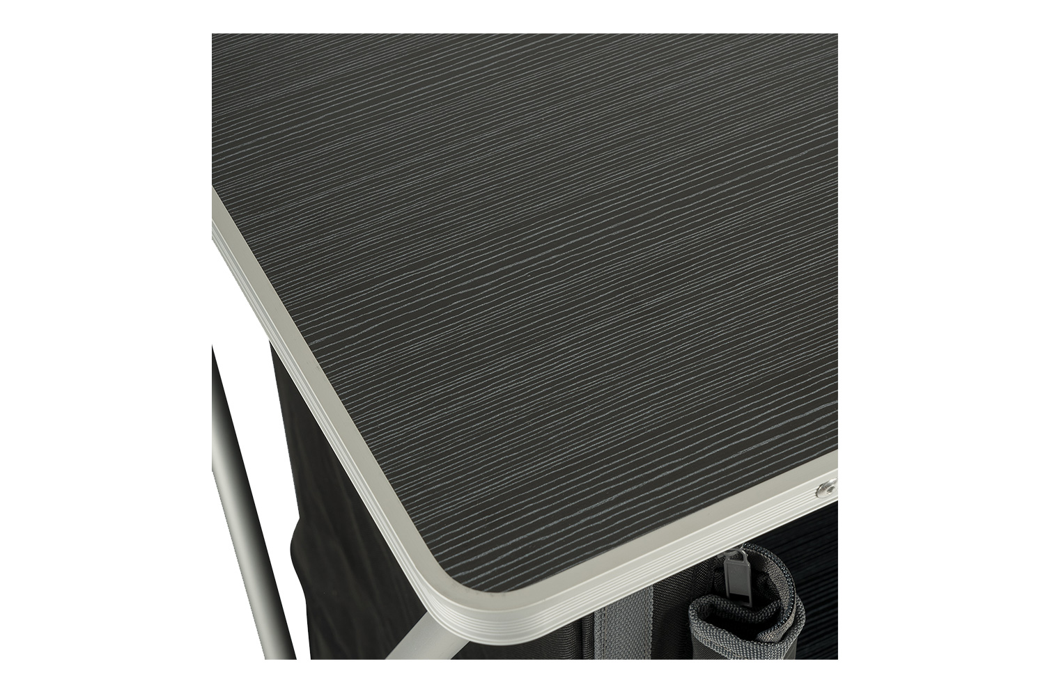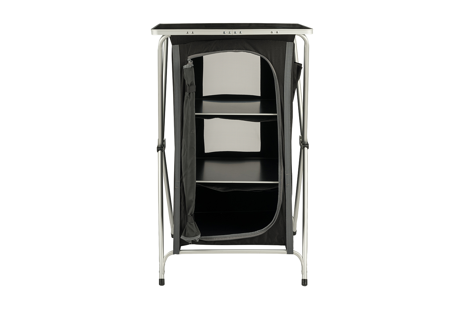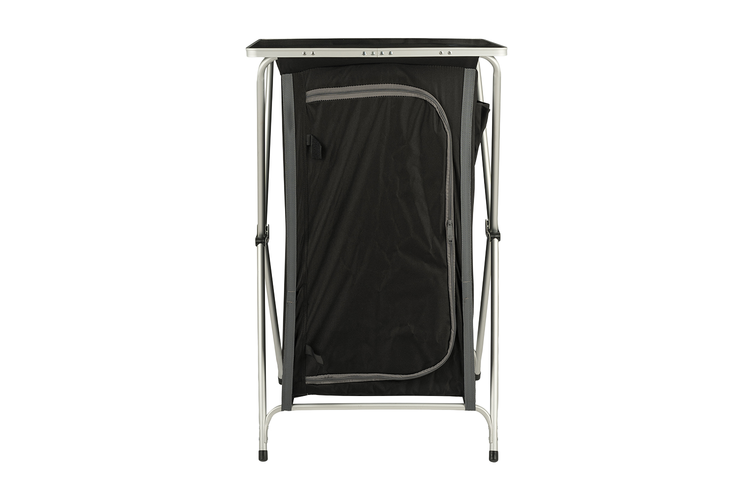 Die robuste Tischplatte macht den Zeltschrank gleichzeitig zu einer funktionalen Arbeitsfläche, ideal zum Kochen, Vorbereiten von Mahlzeiten oder als Ablage.