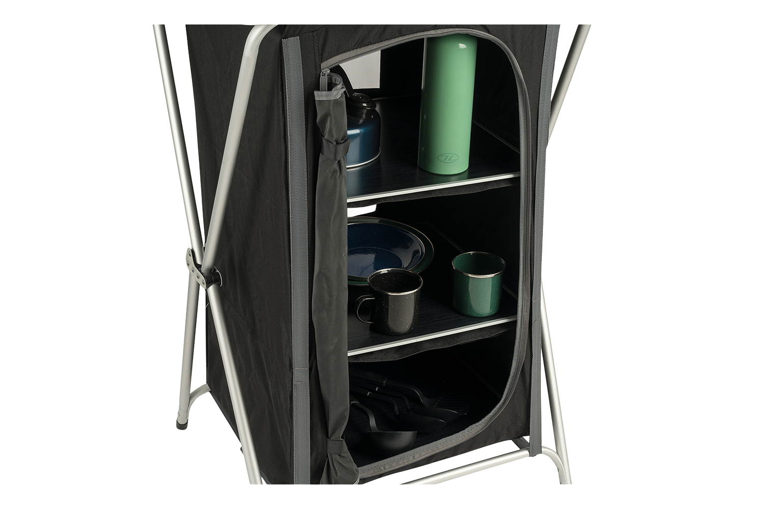 Mit drei großzügigen Fächern bietet der Camping Schrank ausreichend Platz für Lebensmittel, Kochutensilien, Kleidung oder Ausrüstung. So bleibt dein Camp übersichtlich und organisiert.